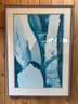 The artwork features a lone figure of a woman seated amidst large, stylized banana leaves rendered in various shades of blue and white. The style is distinctly modern and tropical, characteristic of Hopper's Hawaiian art.