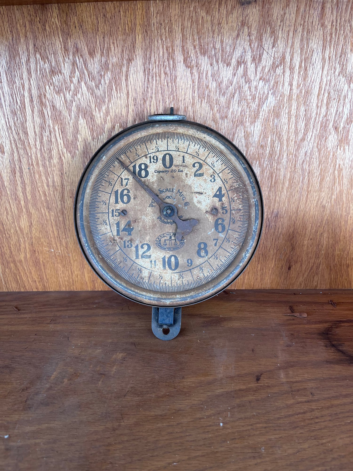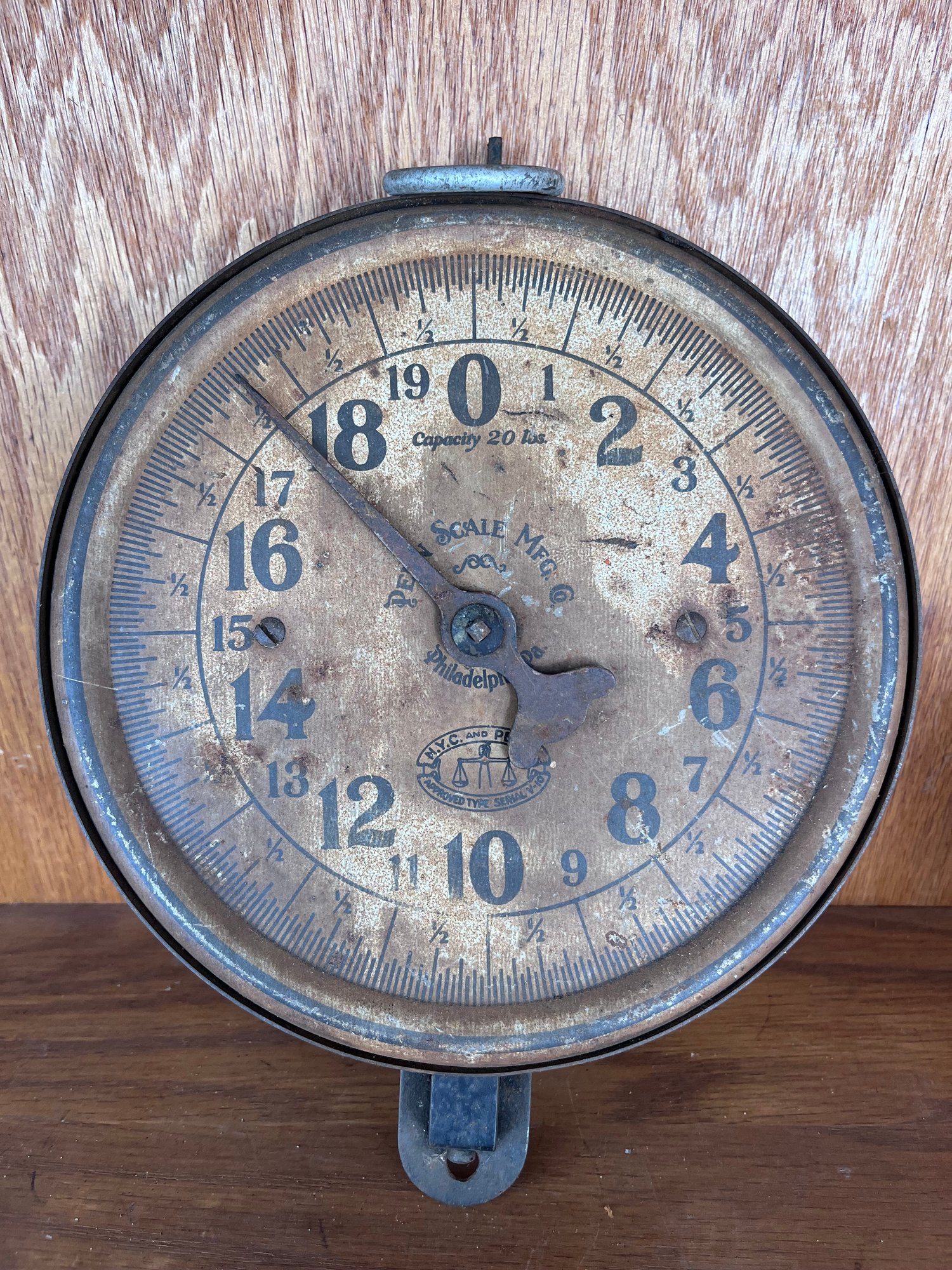 Vintage Penn Scale Mfg Co 20 lb capacity hanging produce scale.
