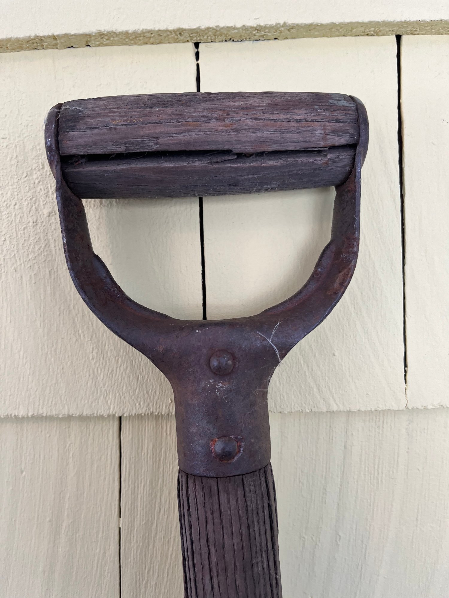 Usually constructed with a forged iron or steel head and a wooden handle. Ideal for farming, gardening, and yard work, such as moving manure or loose debris. Many vintage examples, like the one pictured, show rust and wear, adding to their rustic charm.
