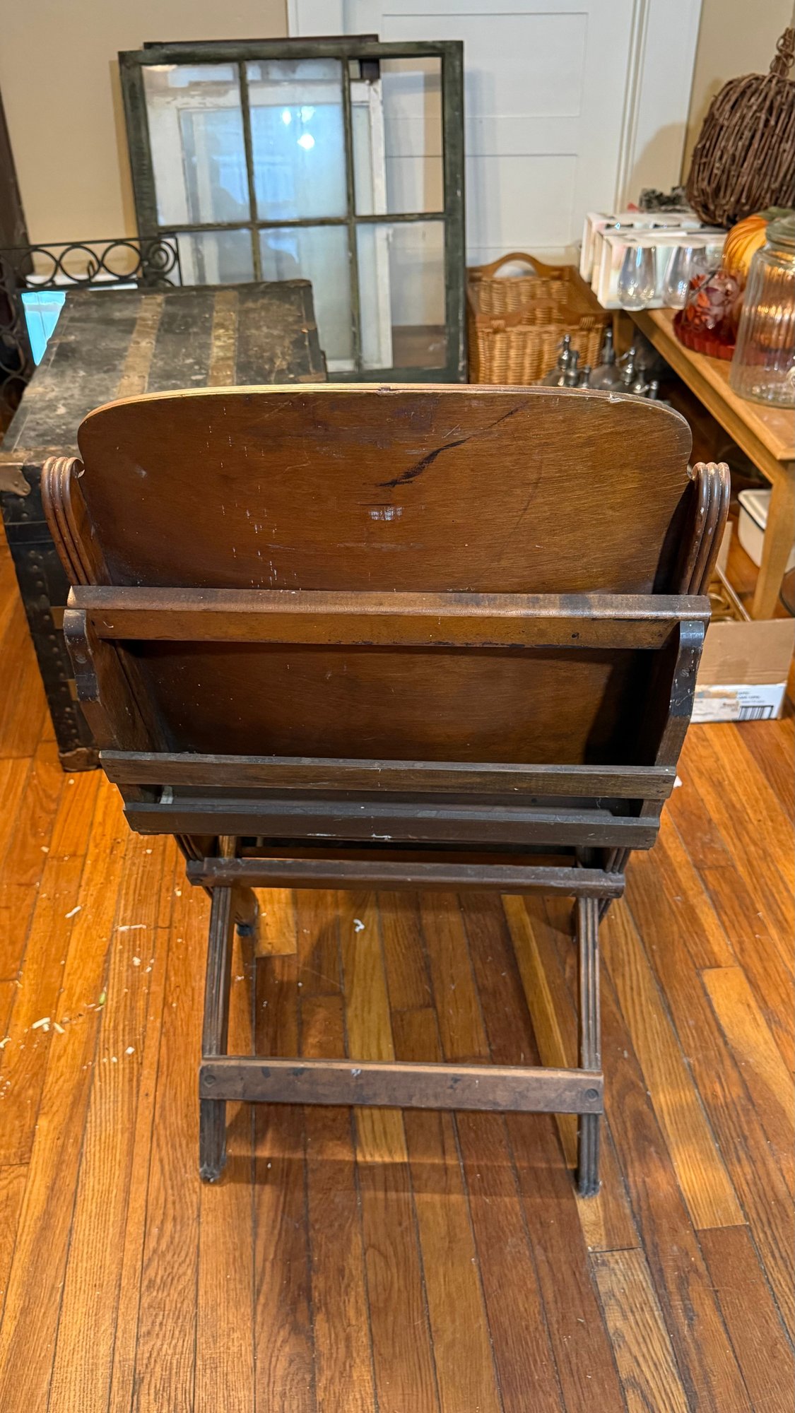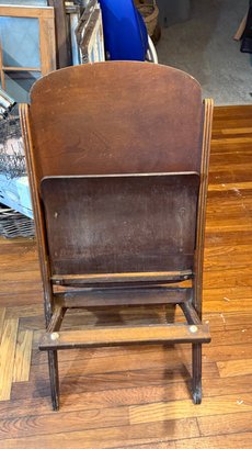 Vintage plywood folding chair, likely dating from the 1940s, often used in schools, churches, or by the military.