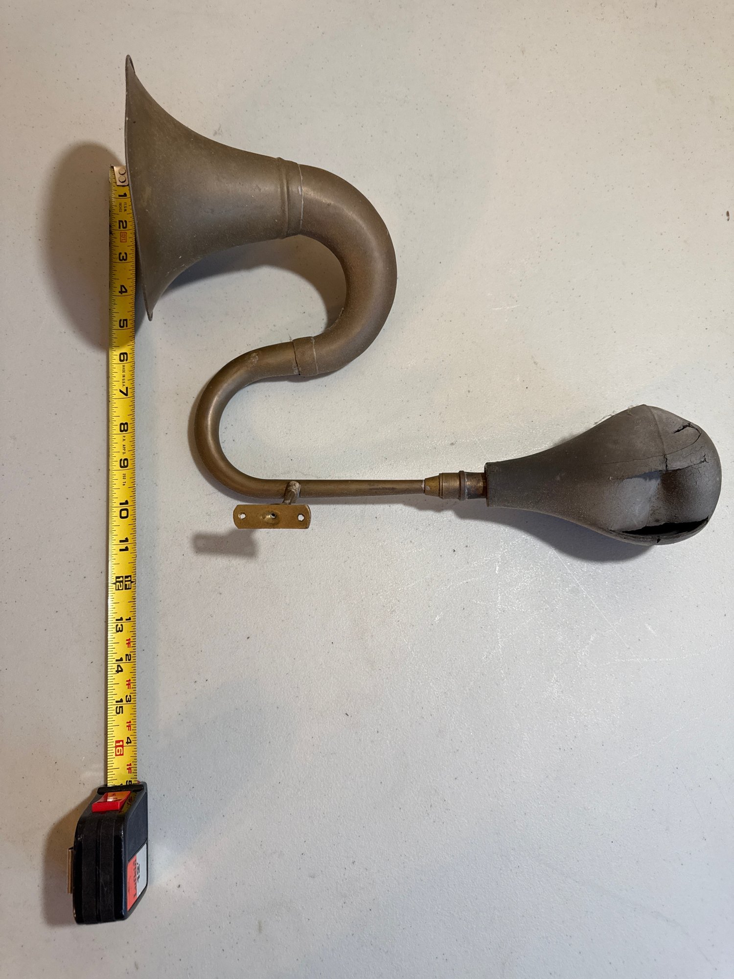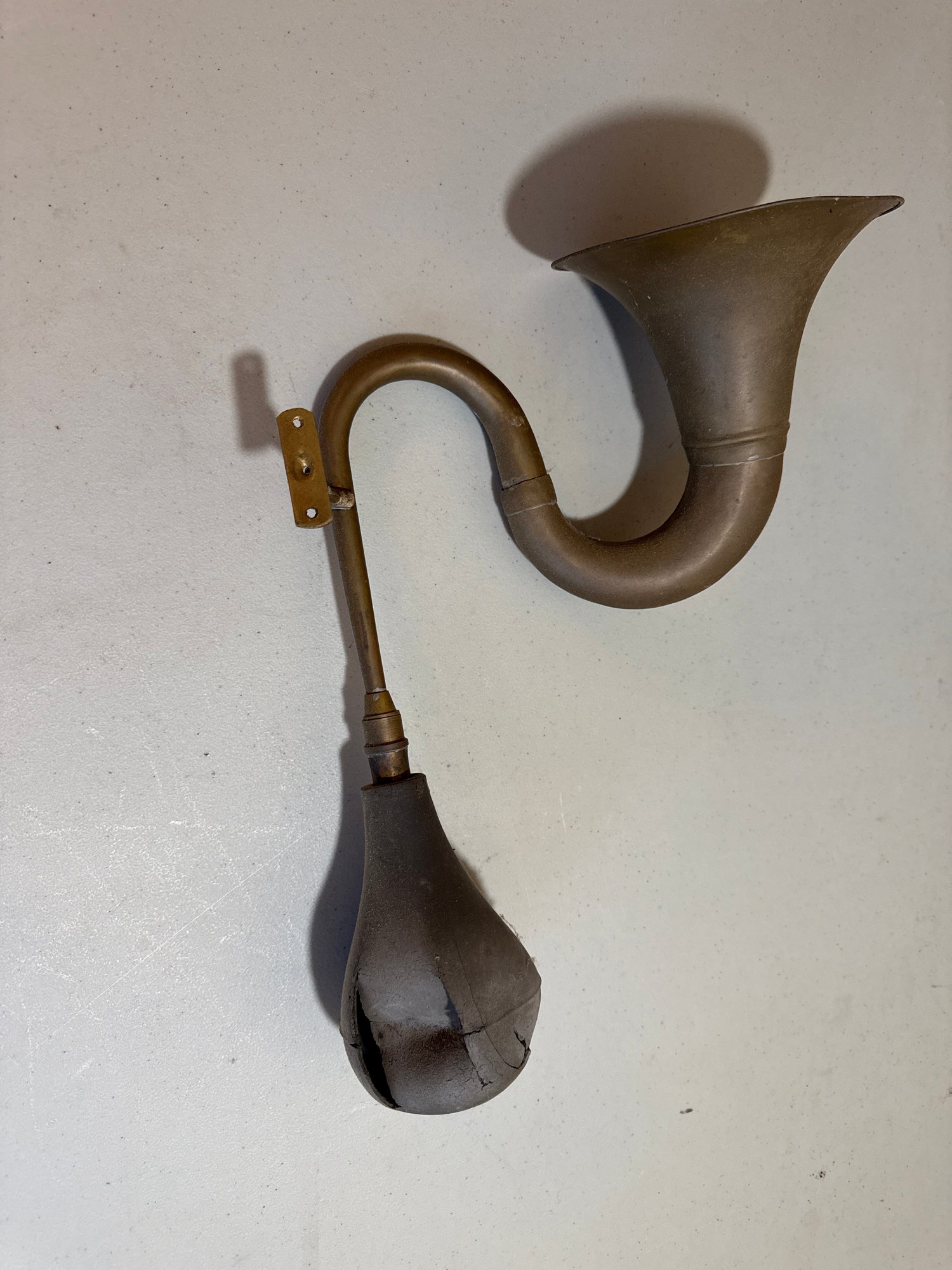 Charming vintage-style brass bulb horn, perfect for collectors, antique décor enthusiasts, or as a functional retro accessory. This horn captures the look and feel of early 20th-century automotive and bicycle horns, adding a nostalgic touch to any space.