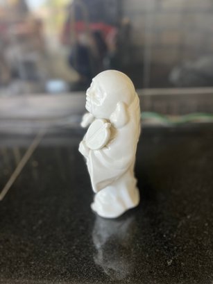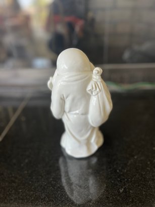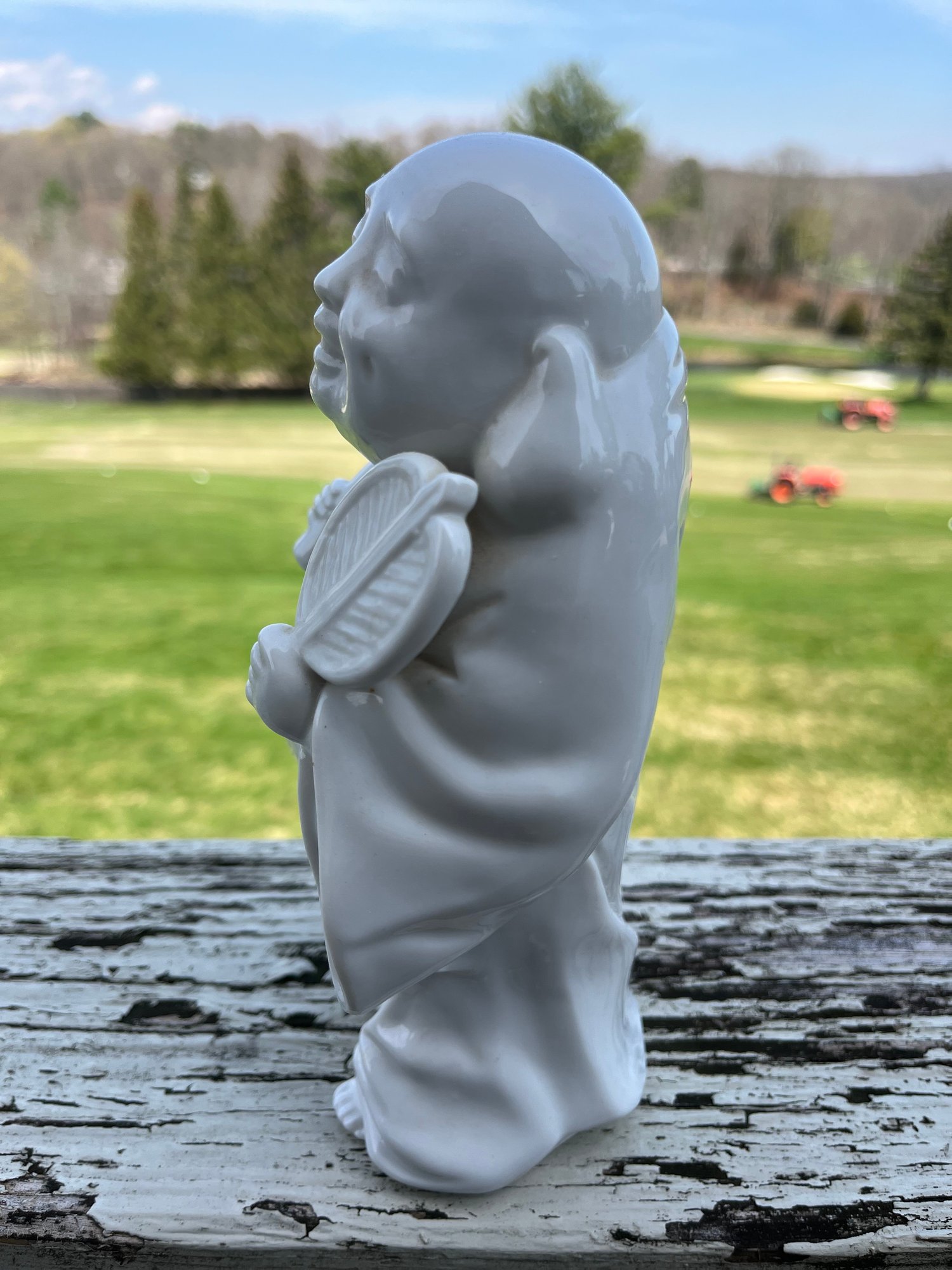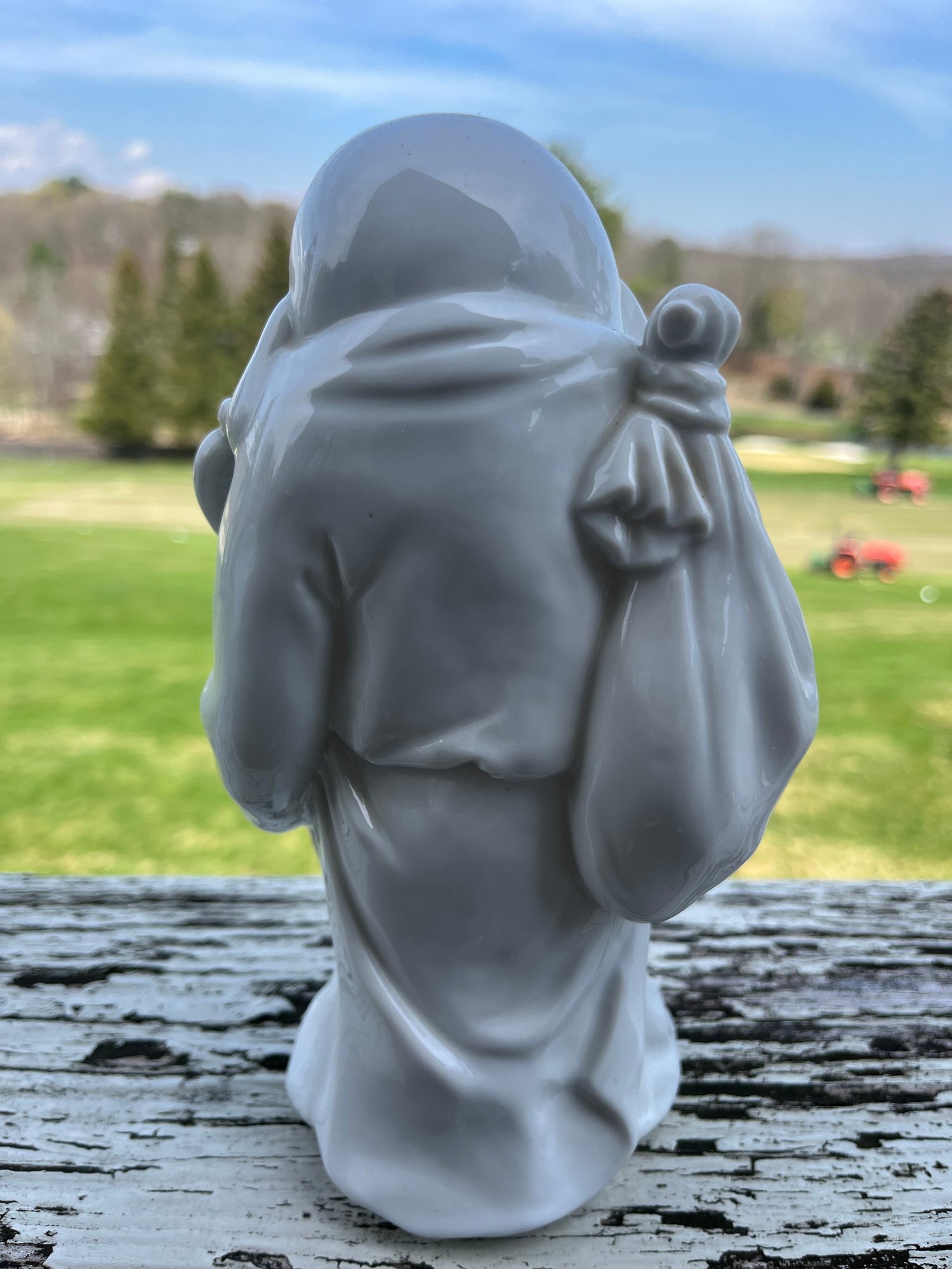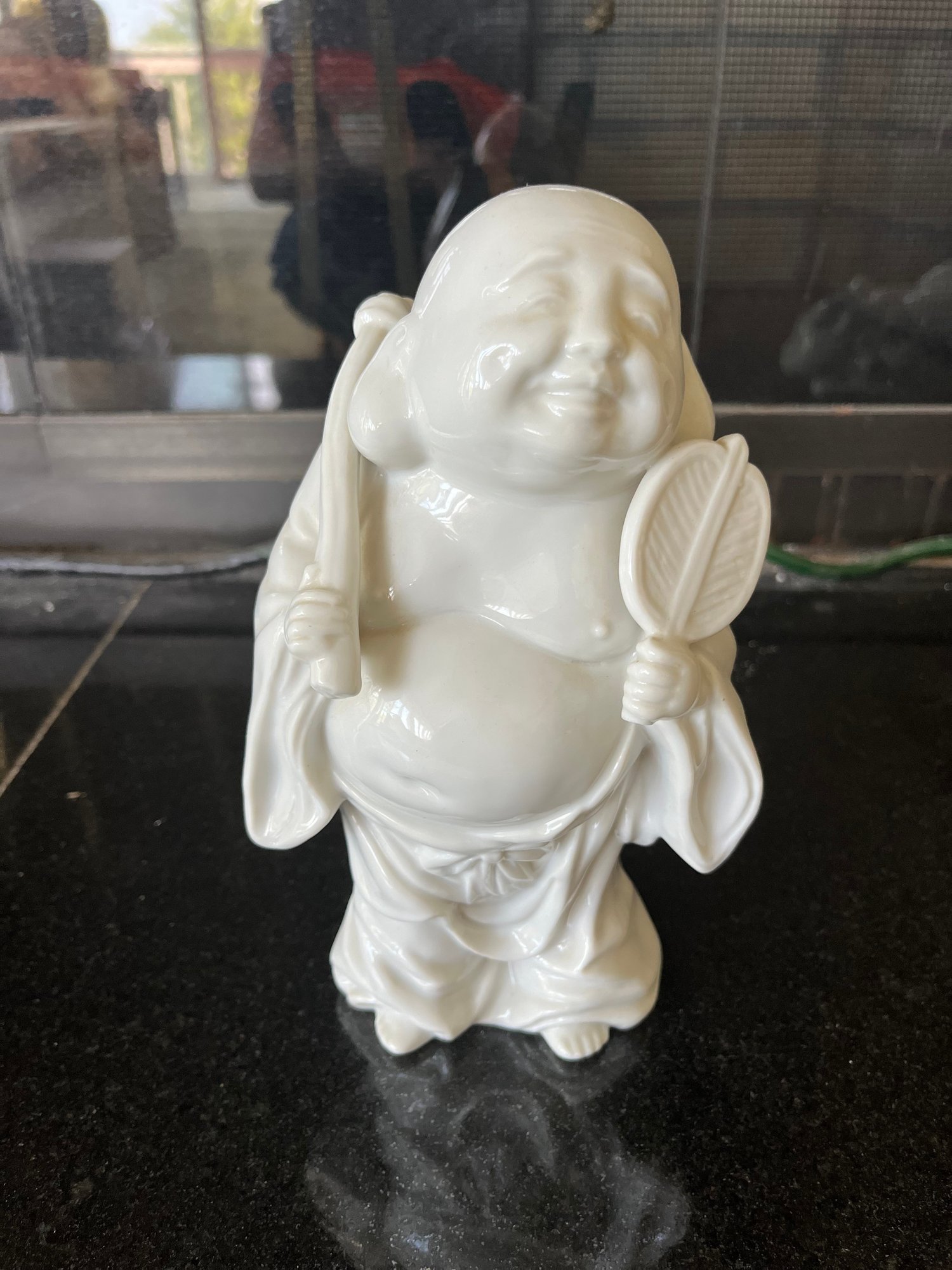 Vintage white porcelain "Happy Buddha" (or Budai) figurine made by TOYO in Japan, typically measuring around 8 inches in height.