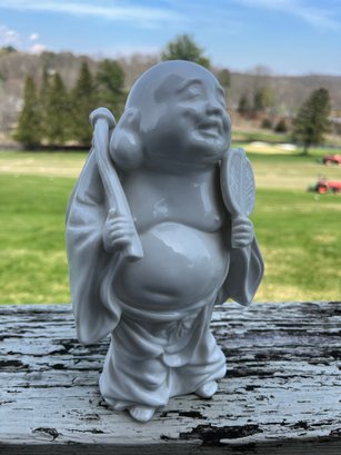 Subject: A jovial, laughing monk figure representing contentment and good fortune.
