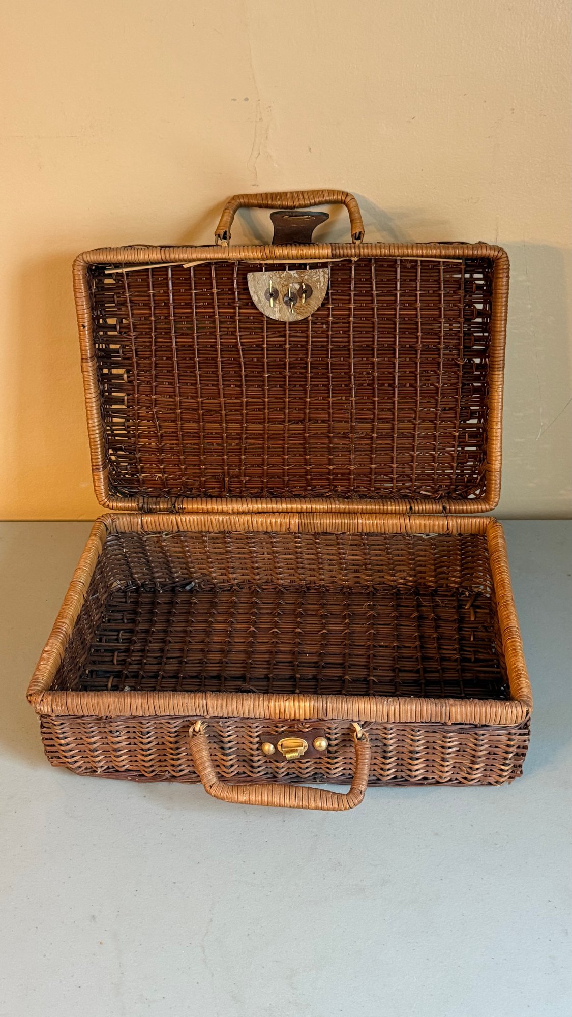Suitcase is 15 1/2 inches wide, 10 1/2 inches deep and 5 1/2 inches high.