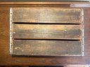 Durable Construction: Crafted from sturdy wood slats, the crate features cut-out handles on the short ends for easy carrying. Galvanized metal bands reinforce the corners, which have a great patina and are fully intact.
