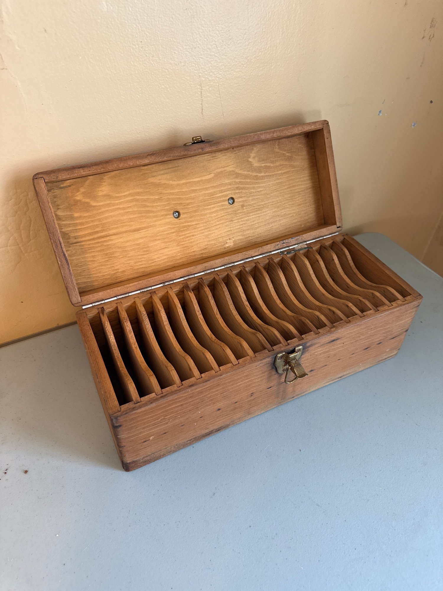 Vintage box is 17 inches wide, 6 1/2 inches deep in 6 1/2 inches.