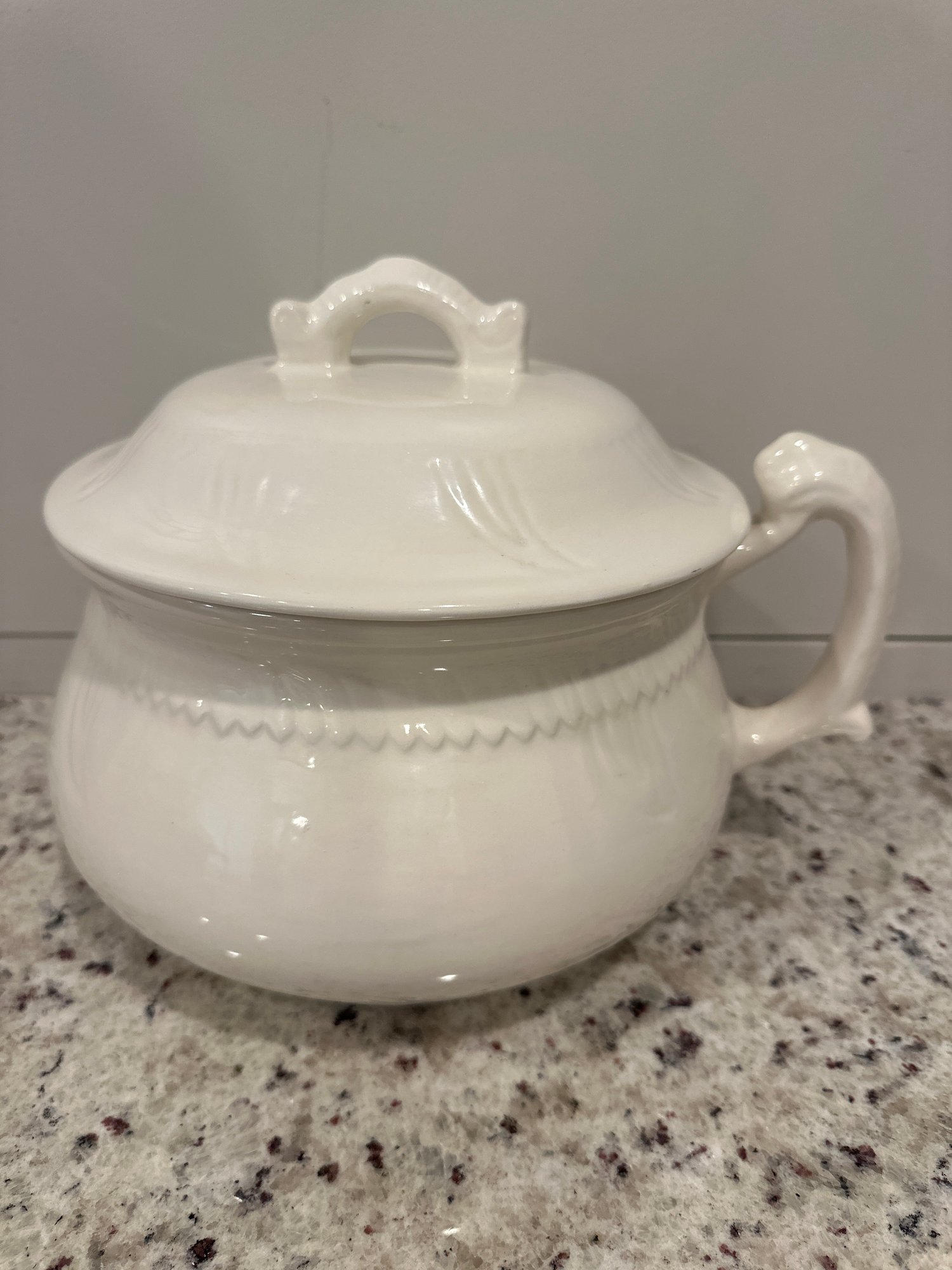 Handled bowl is 9 inches wide and 8 1/2 inches.