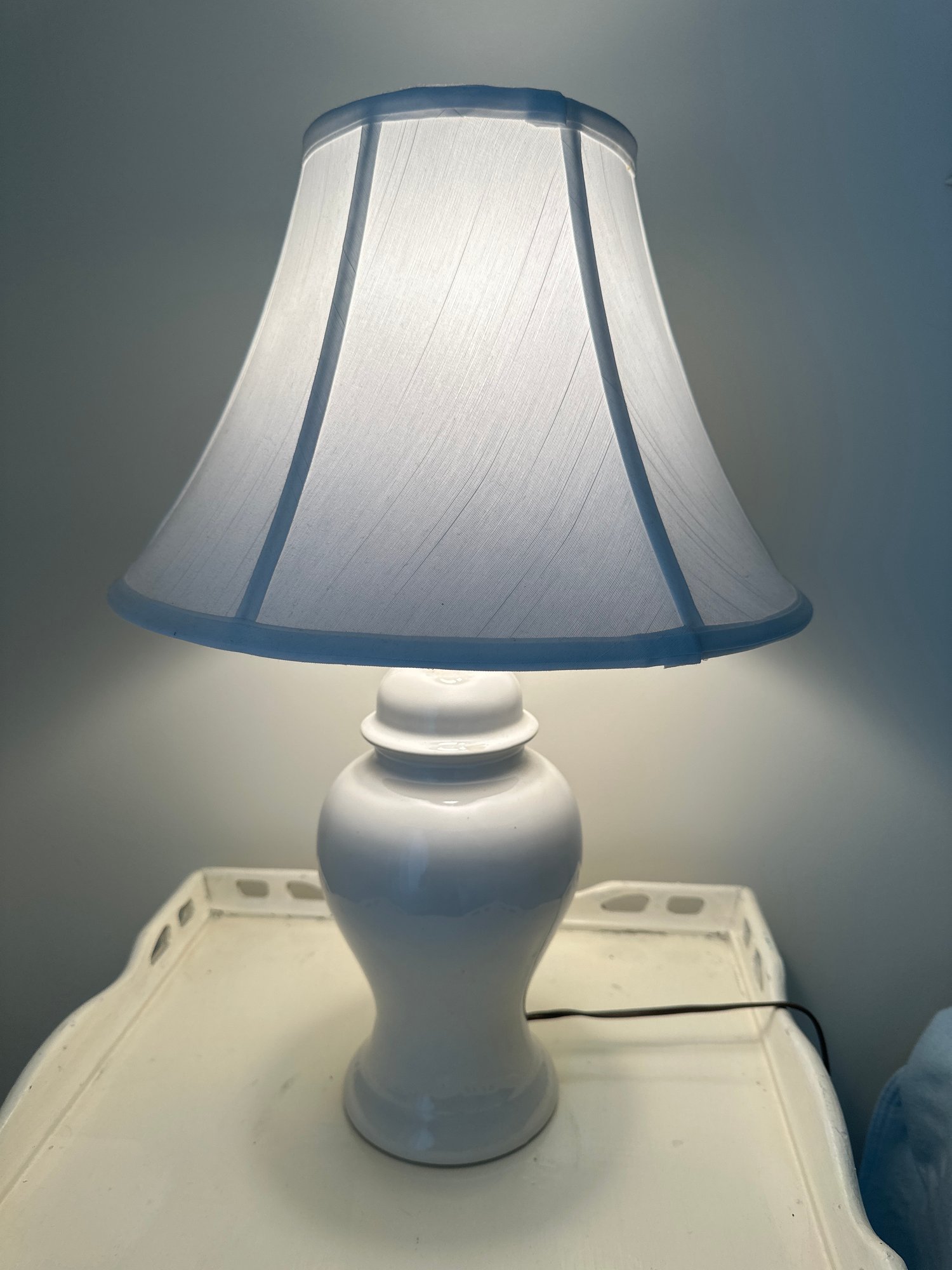 White Ginger Jar Style Table Lamp is 21 inches high and base 5 inches wide