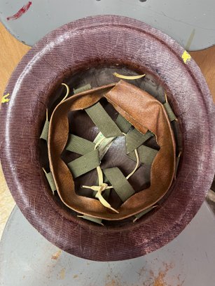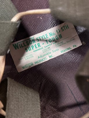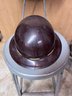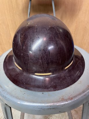 vintage industrial collectible, specifically a mid-century "tiger stripe" fiberglass mining helmet, often associated with the MSA Skullgard or Paramount brands. These helmets were manufactured for high-heat environments and top-impact protection.