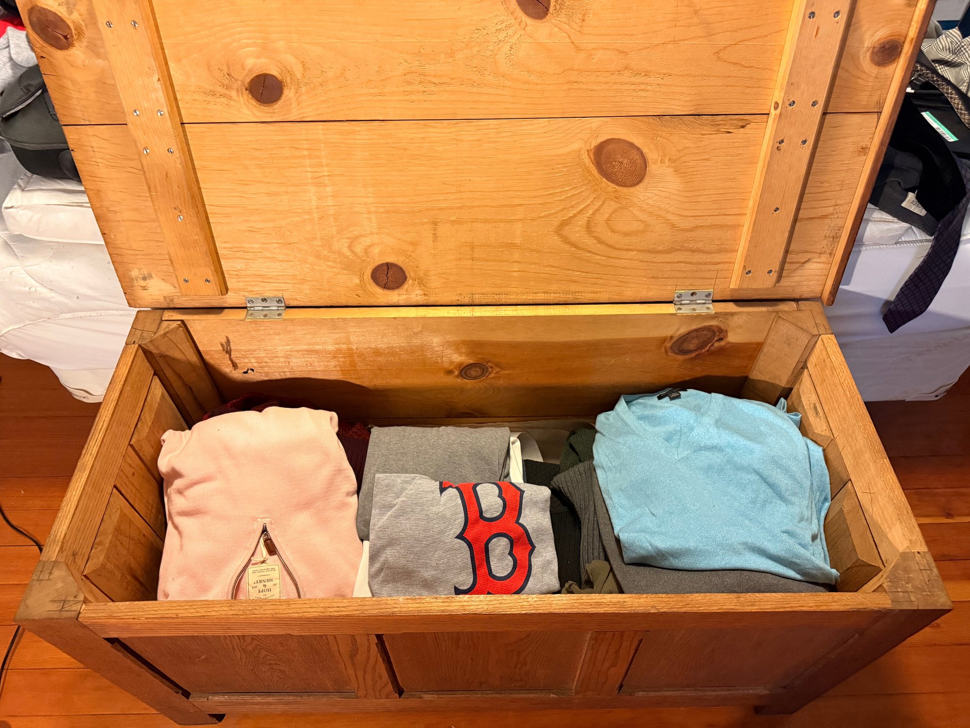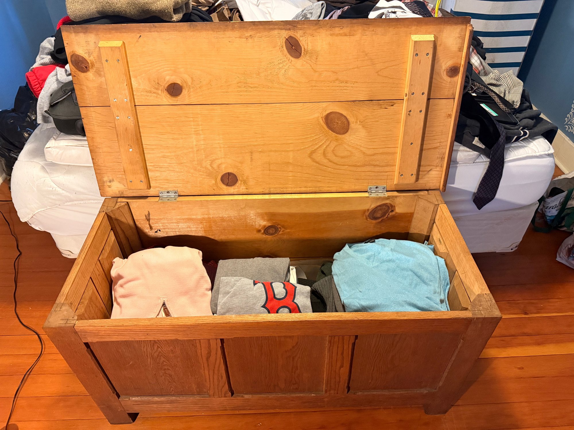Chest is 45 inches wide, 20 1/2 inches deep and 23 inches high.