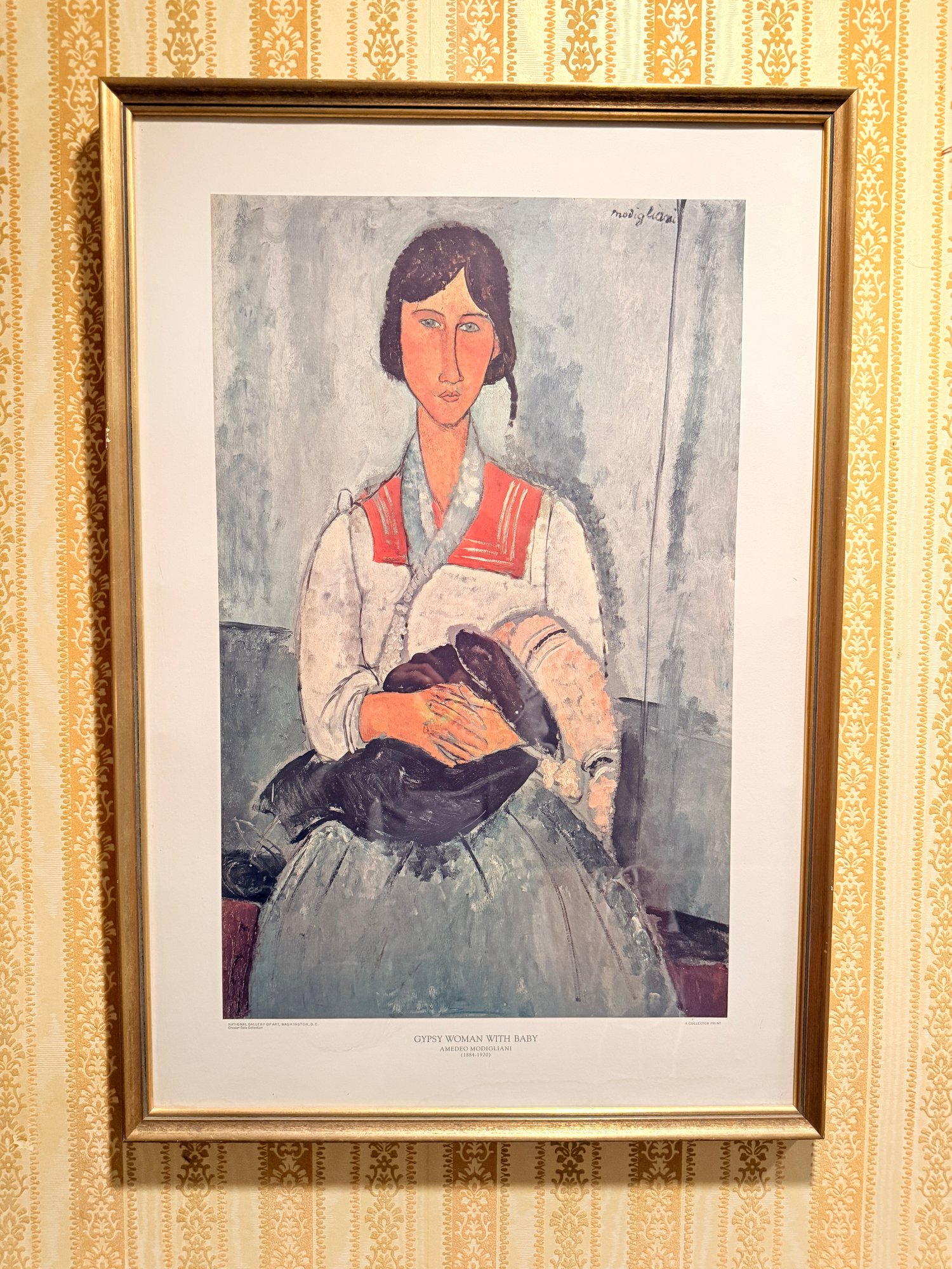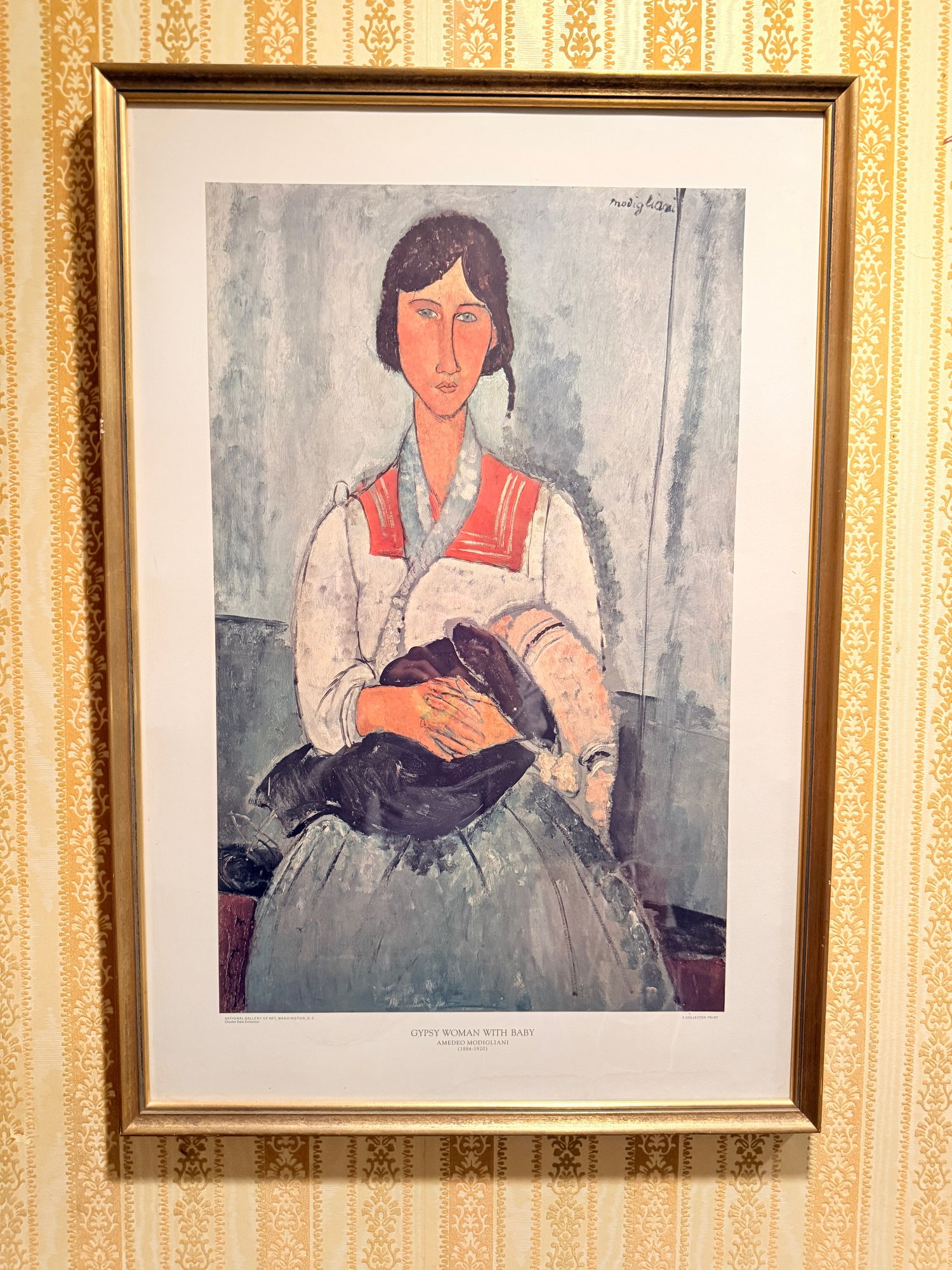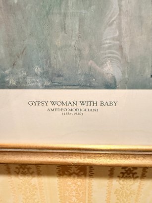Framed art print reproduction of the 1919 painting "Gypsy Woman with Baby" by Italian artist Amedeo Modigliani.