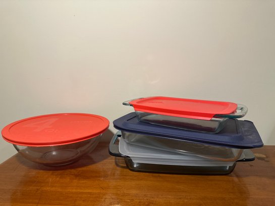 4pcs Pyrex tupperware like new. Glass with lids assorted sizes