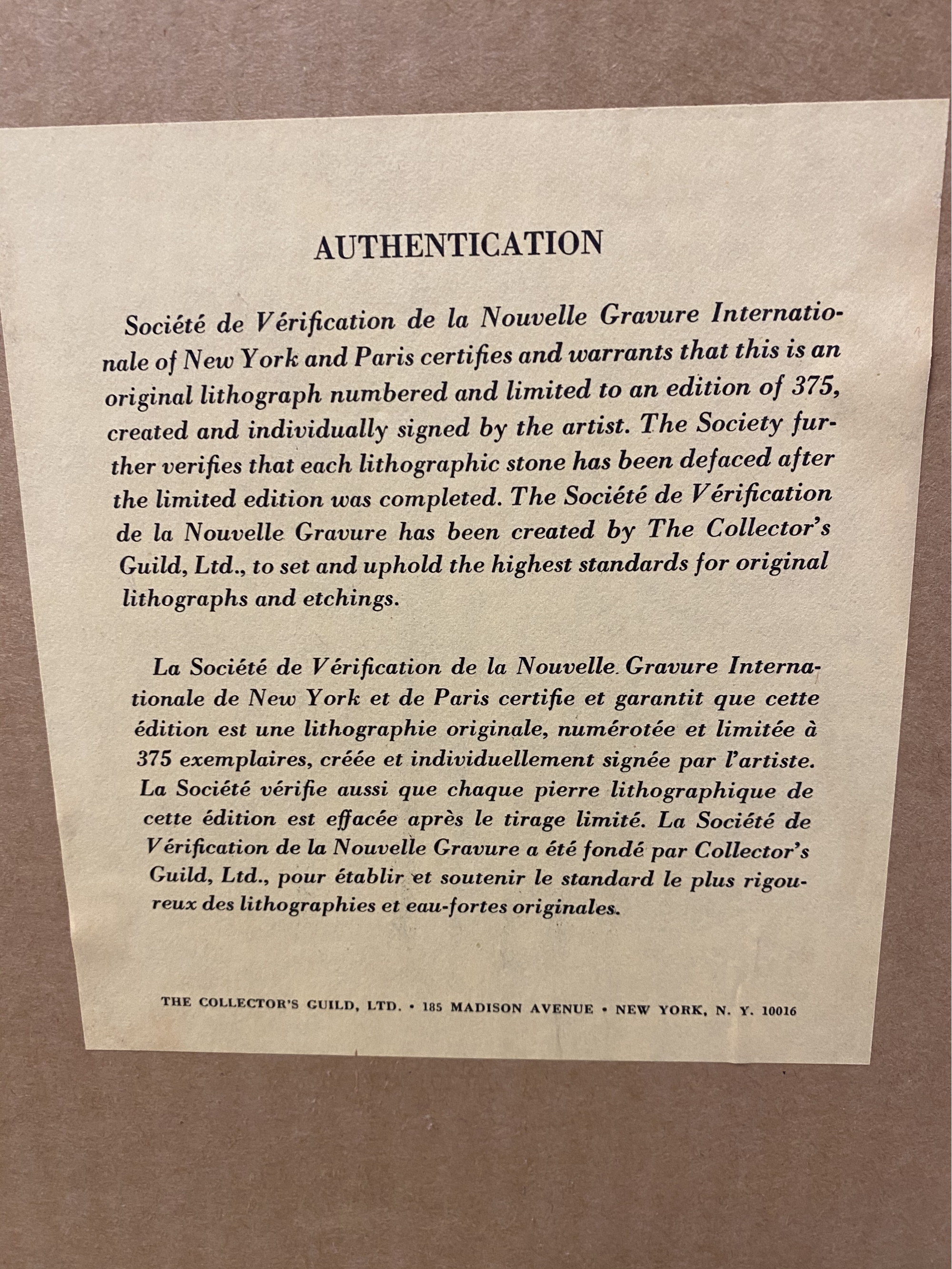 French artist in carved wood frame. Includes Certificate of Authenticity.
