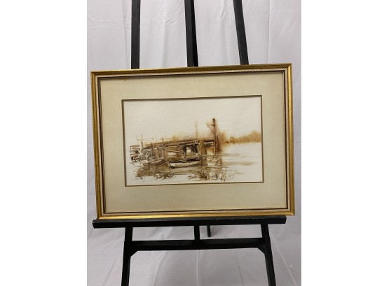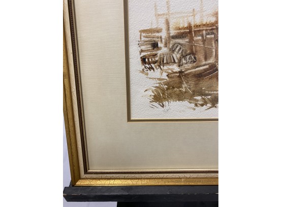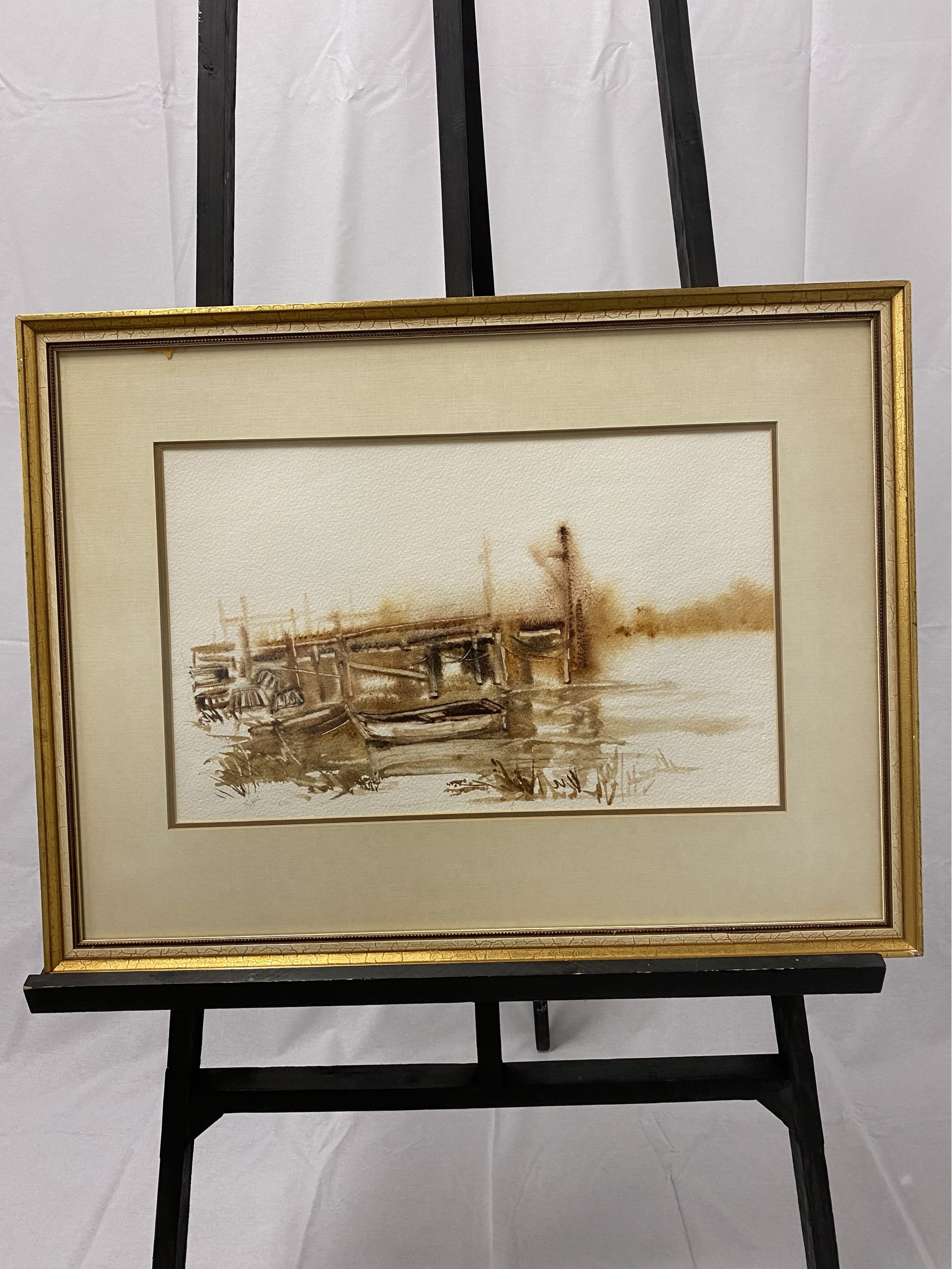 Stunning monocramatic scene od a dock and boats in Maine.