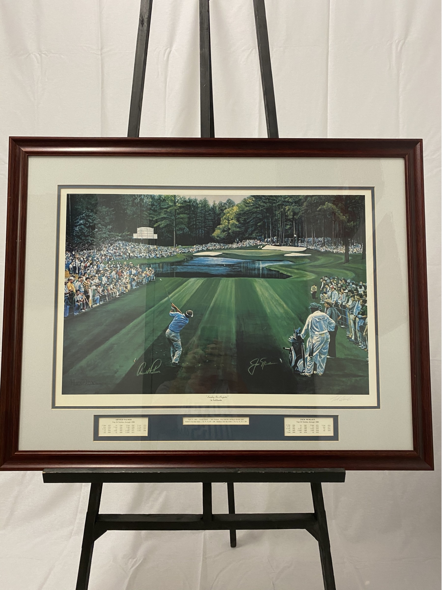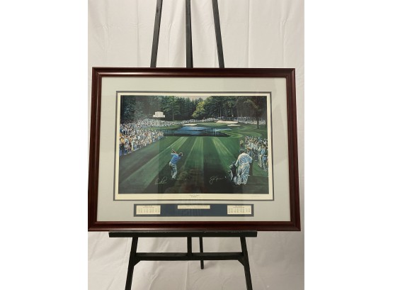 Signed print by artist Ted Hamilton. April 13 1980 Arnold Palmer - Jack Nicholas first pairing in 13 years.