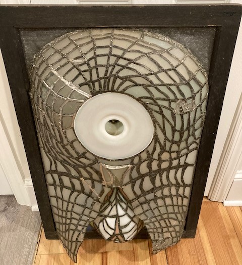 An unsigned leaded glass wall multi-dimensional leaded glass sculpture in wooden frame by artist Craig Stockwell. Was given as a gift by the artist while he was at RISD studying with Chihuly.