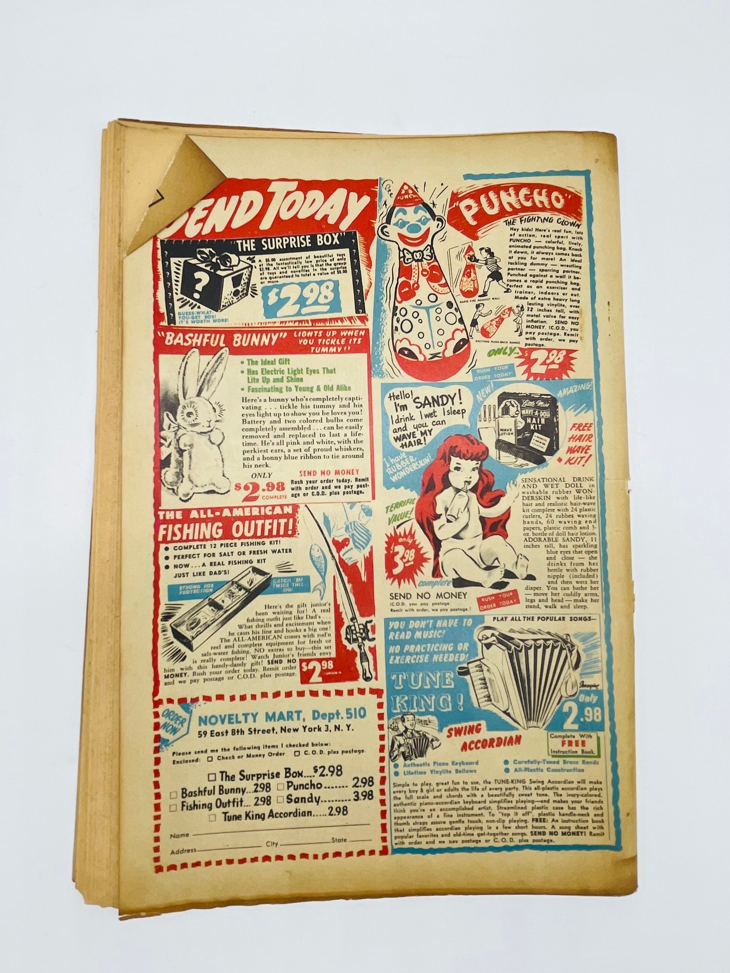 *All Comics in this collection are ungraded and directly out of the estate closet where they have sit stored in a box for the last 70+ years and a very exciting find to just be found this way. The "Barn Find" of Comic Books per say! If you are especially concerned about condition please contact with additional questions as we try to do the best job we can showing issues in our photos. We would be more then glad to do a face time call, send additional photos and so on to help with condition as we know there are a few very high dollar pieces in this collection. Also stay tuned for auction #2 of Toys, Advertising, Jukeboxes and other items as we work on cleaning out this estate.