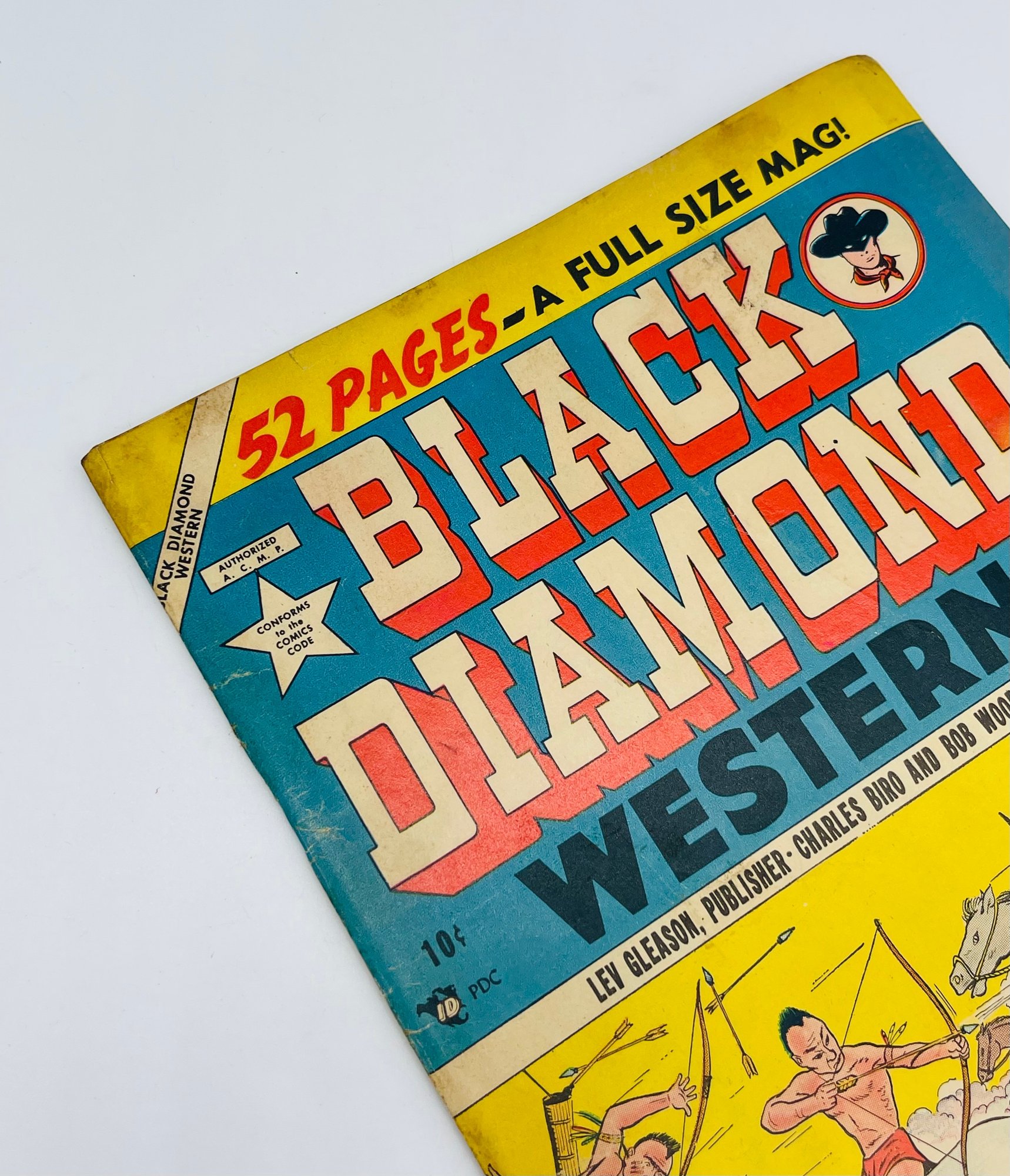 Up for sale in this NO RESERVE auction is a Vintage 10 Cent Golden Age Comic Book Black Diamond Western Issue No. 61 July 1945. Published by Lev Gleason. Art by Charles Biro. All pages are intact with cover attached and please view close up photos to help in condition detail.