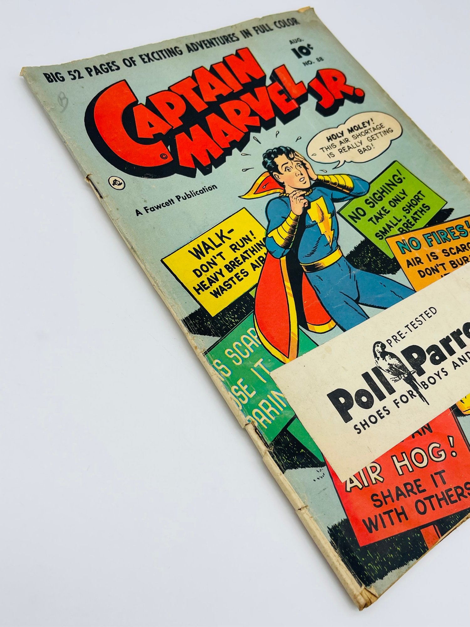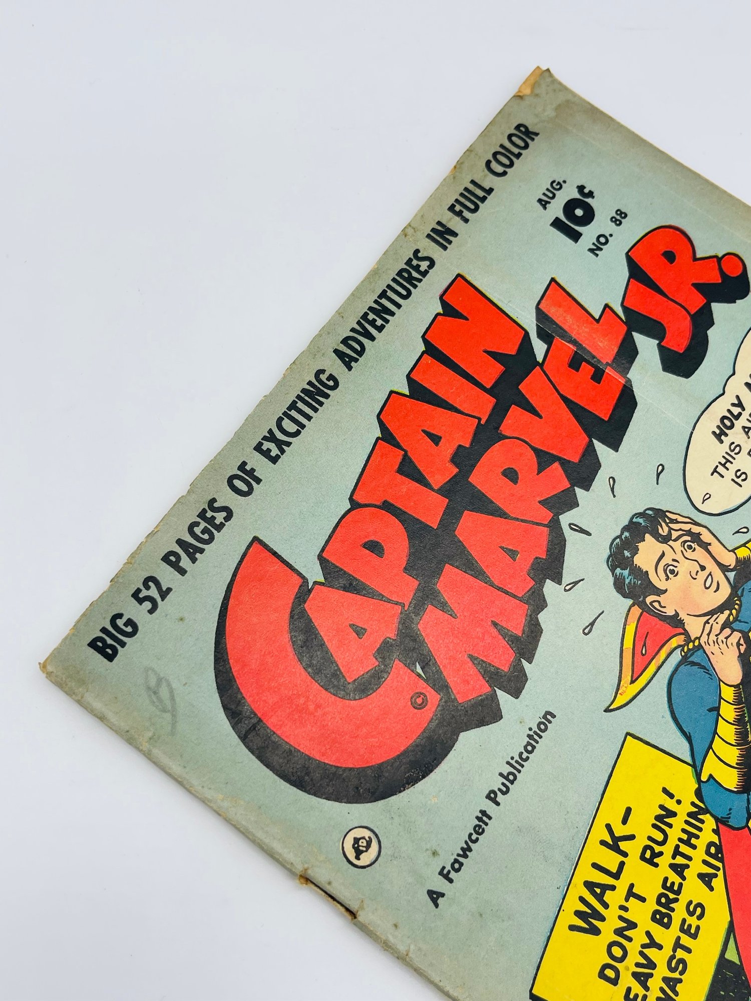 Up for sale in this NO RESERVE auction is a Vintage 10 Cent Golden Age Comic Book Captain Marvel Jr. Issue No. 88 1950. Published by Fawcett Publication. All pages are intact with cover attached and please view close up photos to help in condition detail.