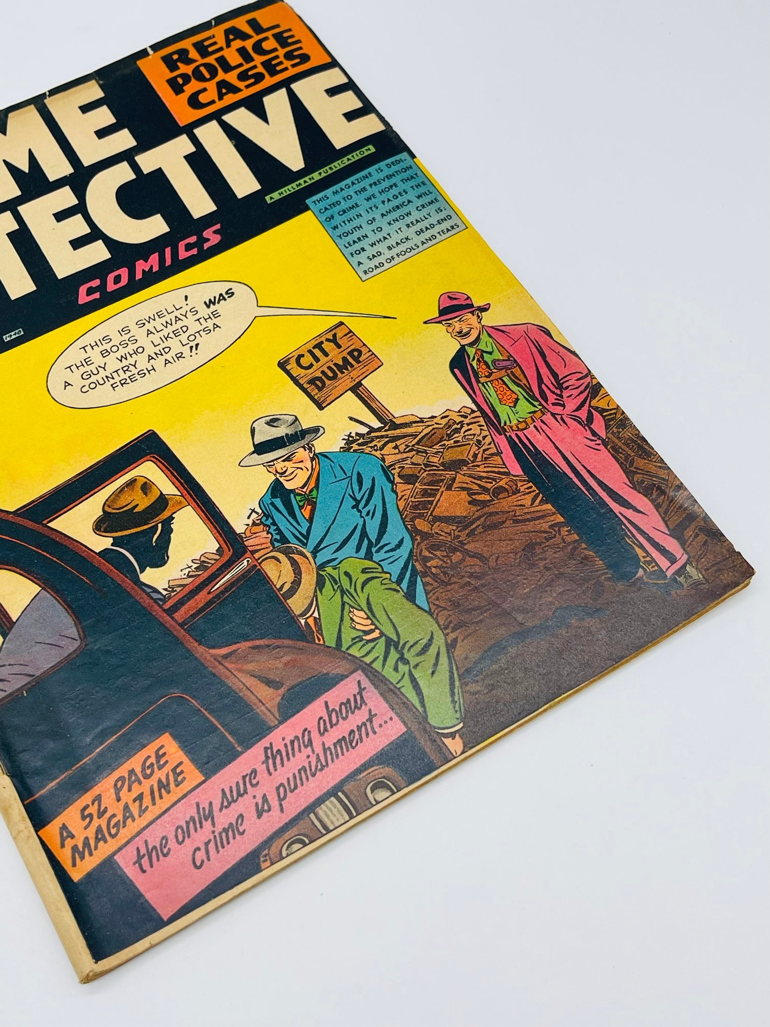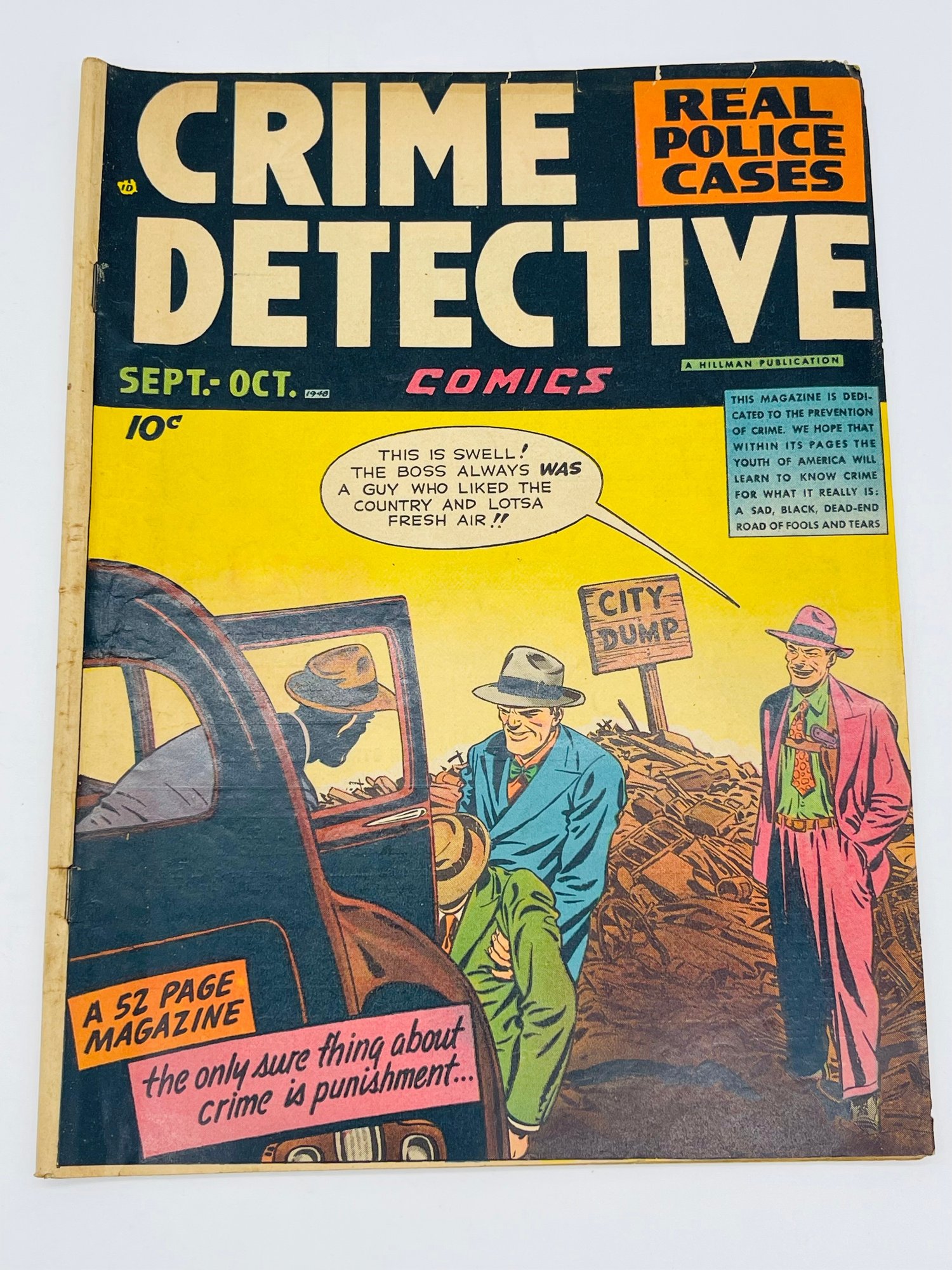 Up for sale in this NO RESERVE auction is a Vintage 10 Cent Golden Age Comic Book Crime Detective Comics Real Police Cases Issue No. 1 September October 1948. Published by Hillman Periodicals. Art by Bob Fijitani, George Gregg and Rudy Palais. Story of Frank Nash infamous Kansas City Massacre. All pages are intact with cover attached and please view close up photos to help in condition detail.