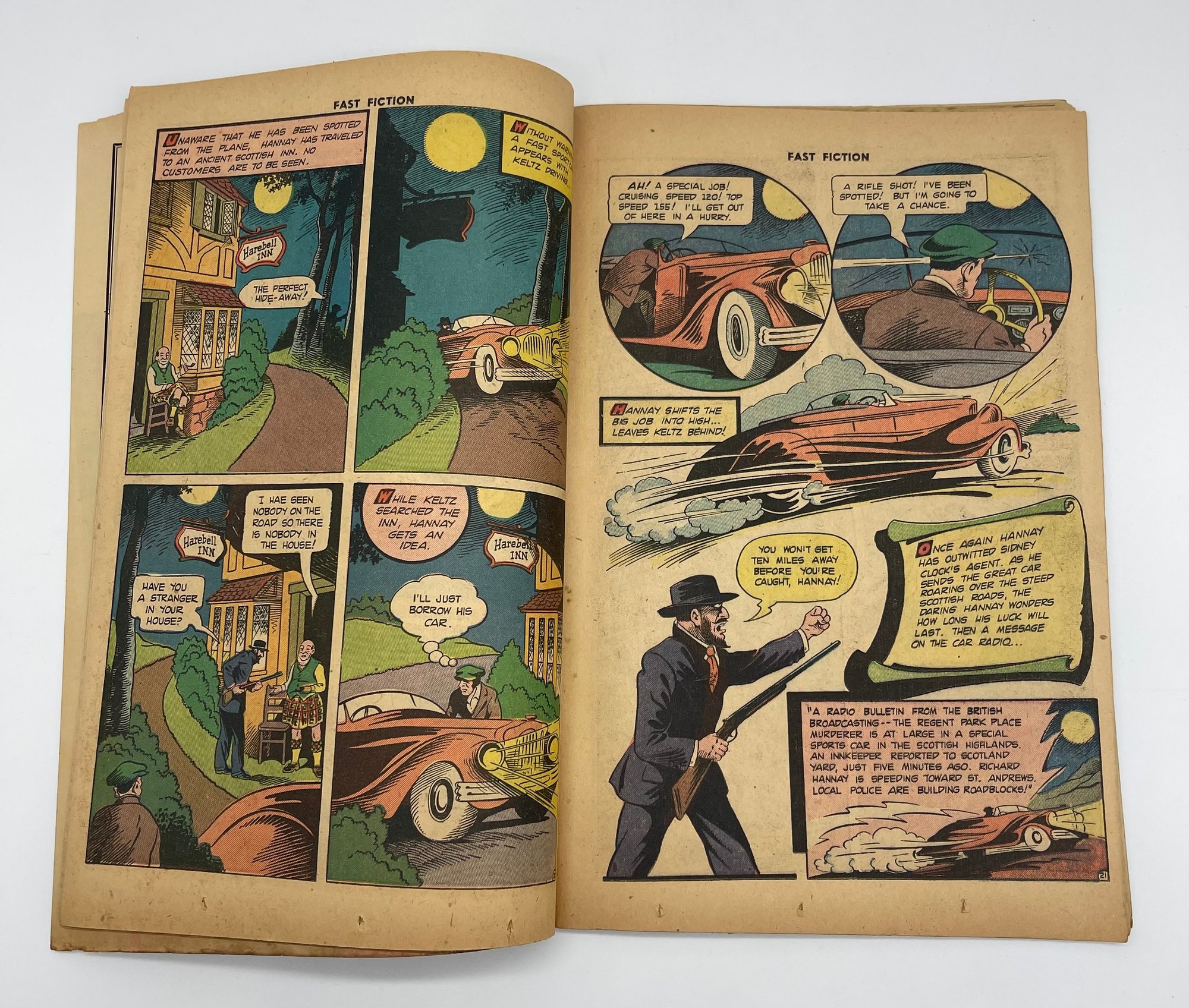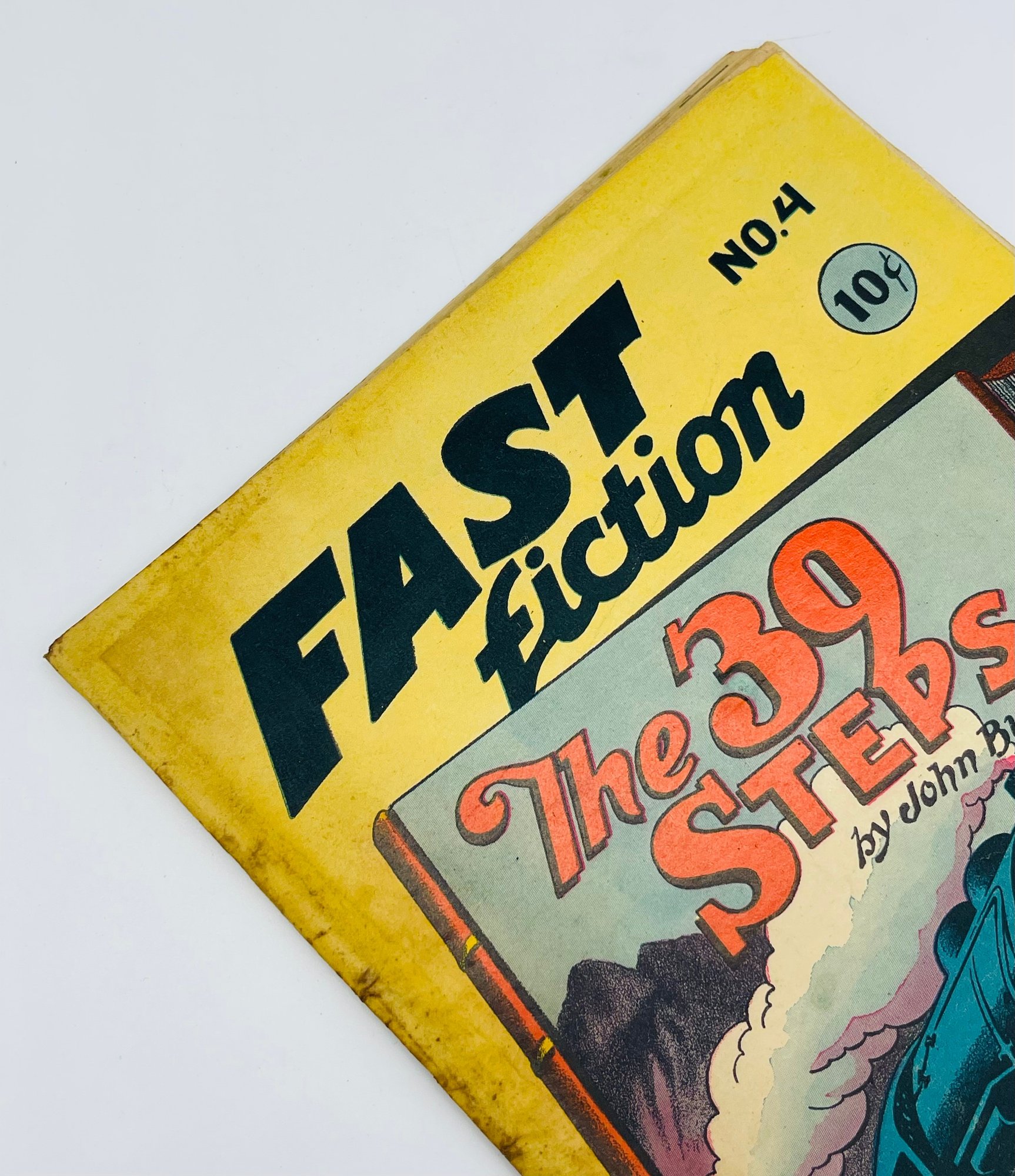 Up for sale in this NO RESERVE auction is a Vintage 10 Cent Golden Age Comic Book Fast Fiction The 39 Steps by John Buchan A Thrilling Spy Story Issue No. 4 1950. Published by Famous Authors Limited. All pages are intact with cover attached and please view close up photos to help in condition detail.