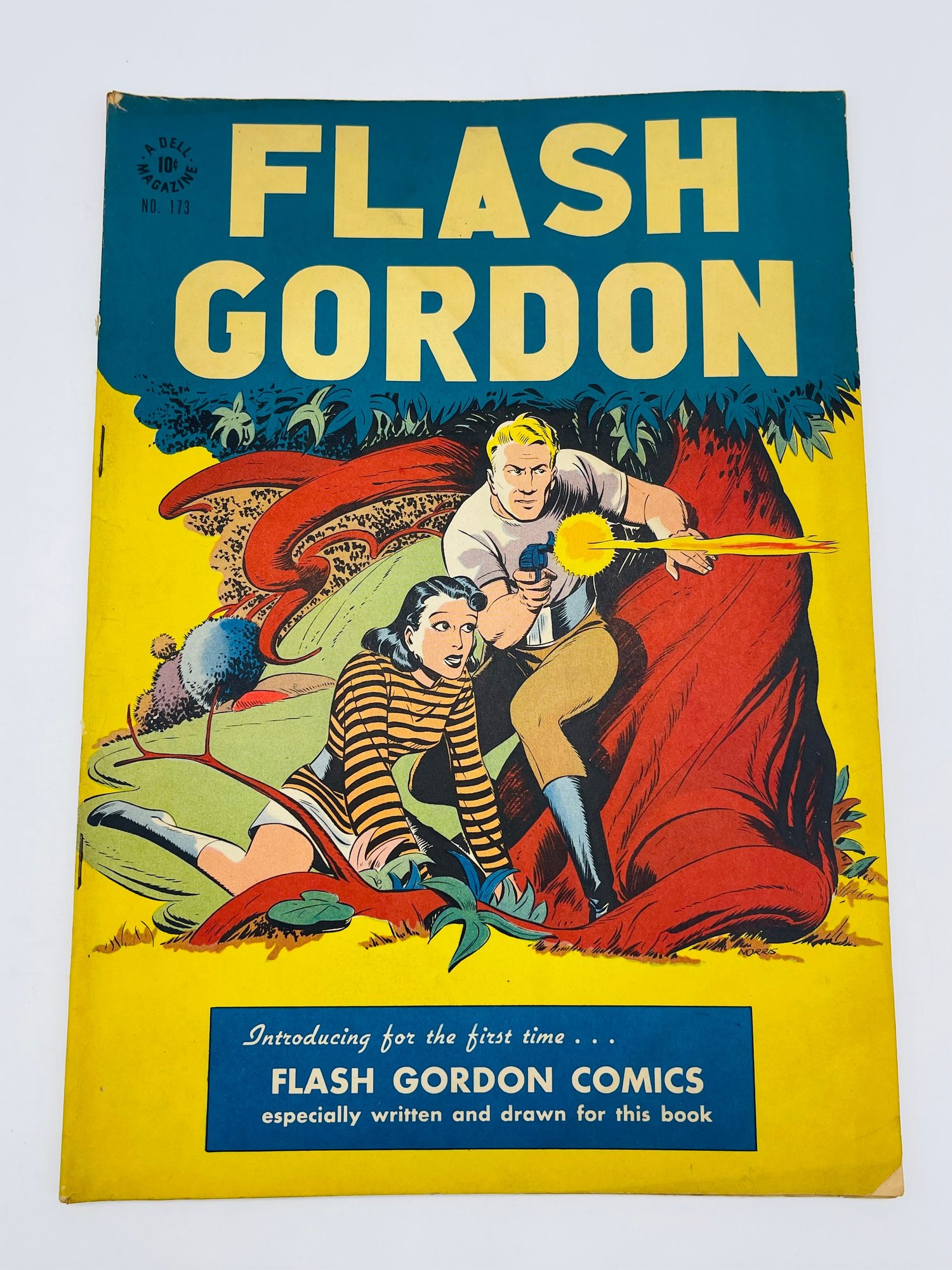 Up for sale in this NO RESERVE auction is a Vintage 10 Cent Golden Age Comic Book Flash Gordon Issue No. 173 1947. Published by Dell Four Color. Art by Paul Norris. All pages are intact with cover attached and please view close up photos to help in condition detail. As stated this is what people would call a barn find in the car world, to us it looks to be in very good condition and would have a high rating, but if you are a serious buyer that needs more photos, information, would like to do a face time call to view the piece or come see in person we more then welcome that so please contact the auction company on this or any of the comics posted for a viewing. Rare opportunity for this piece fresh out of a Missouri Estate that has been in the family for years.