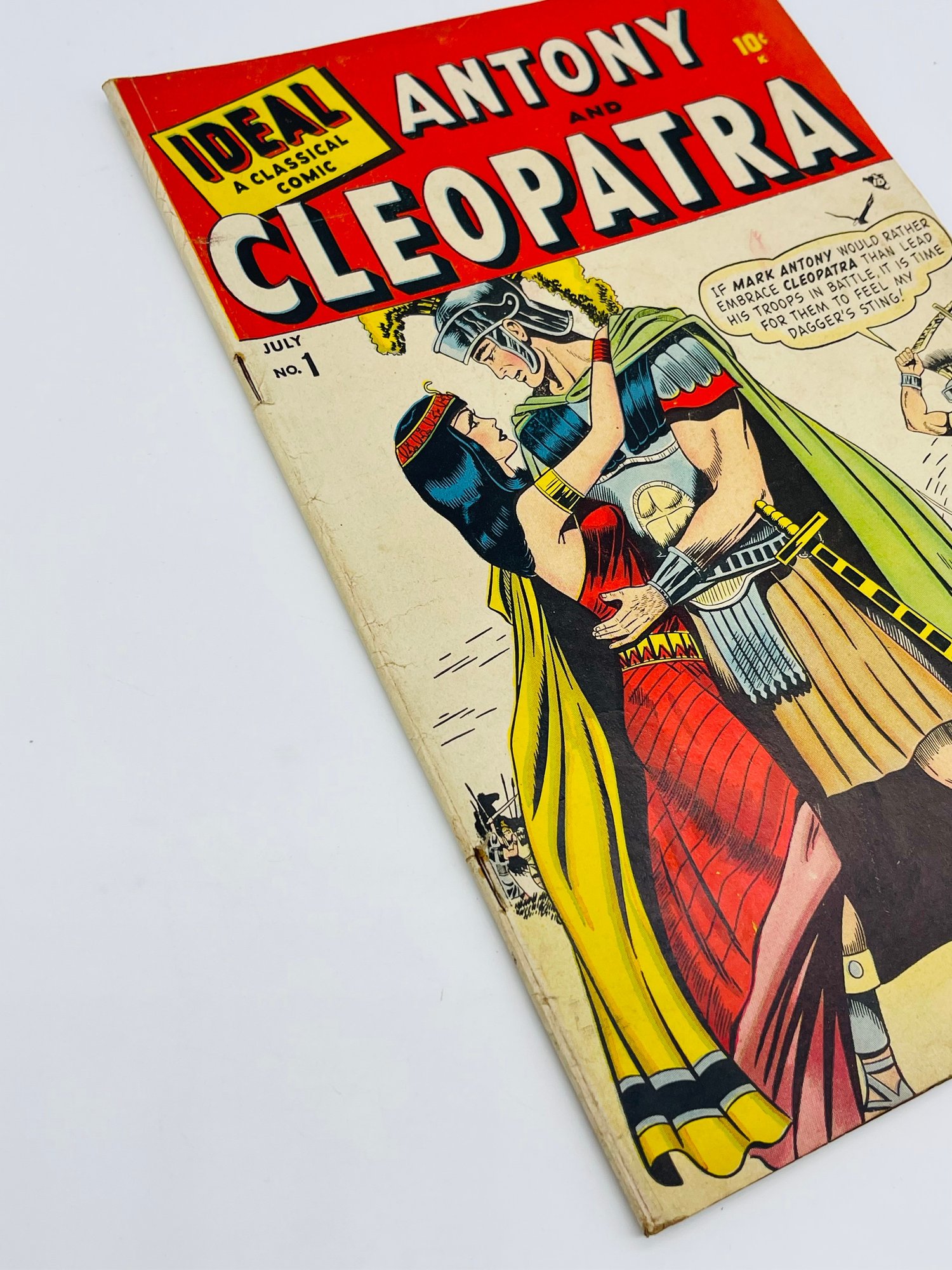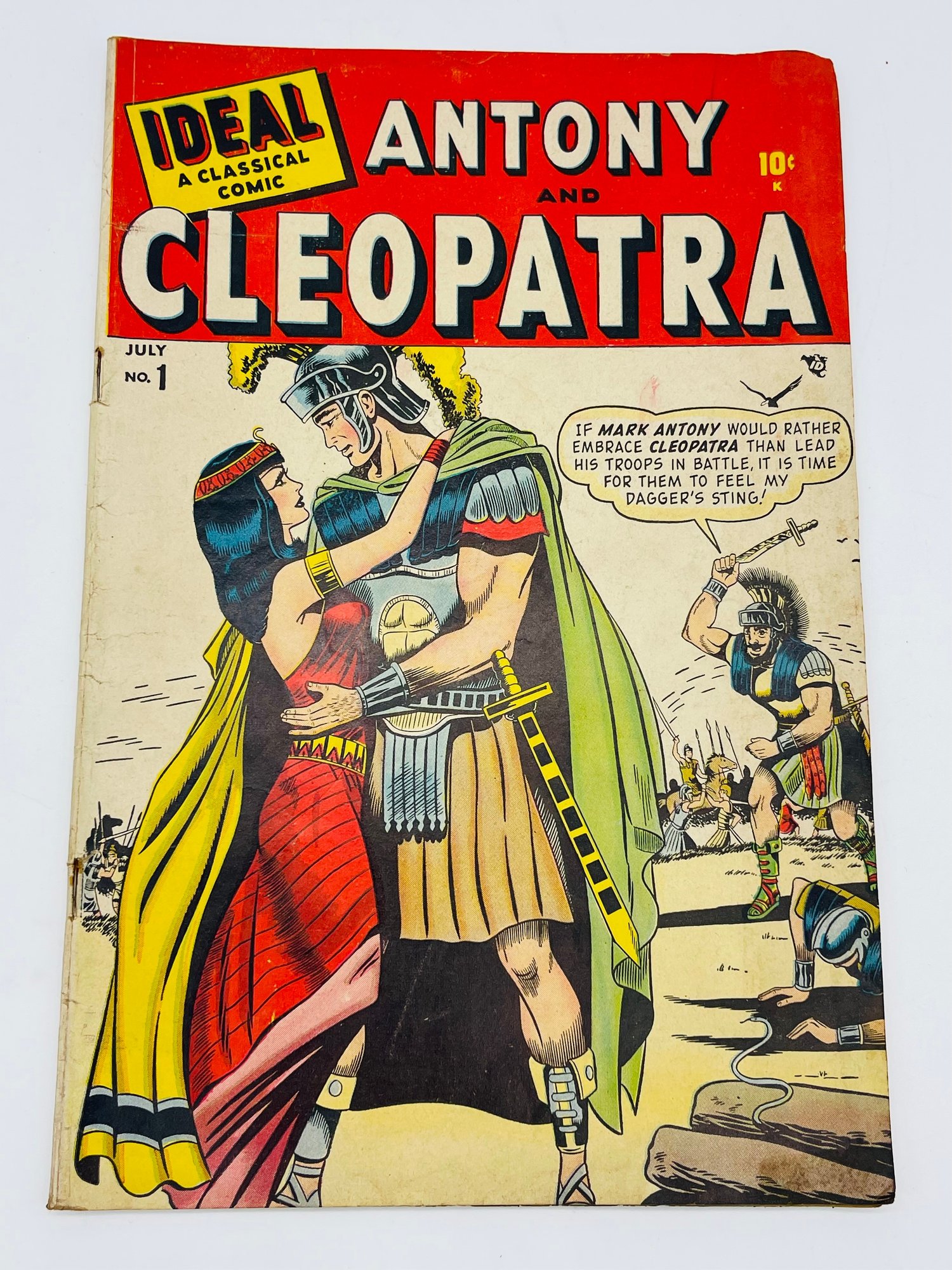 Up for sale in this NO RESERVE auction is a Vintage 10 Cent Golden Age Comic Book Ideal A Classical Comic Antony and Cleopatra Issue No. 1 July 1948. Published by Timely Comics Marvel. Art by C.C. Beck and Pete Costanza. All pages are intact with cover attached and please view close up photos to help in condition detail.