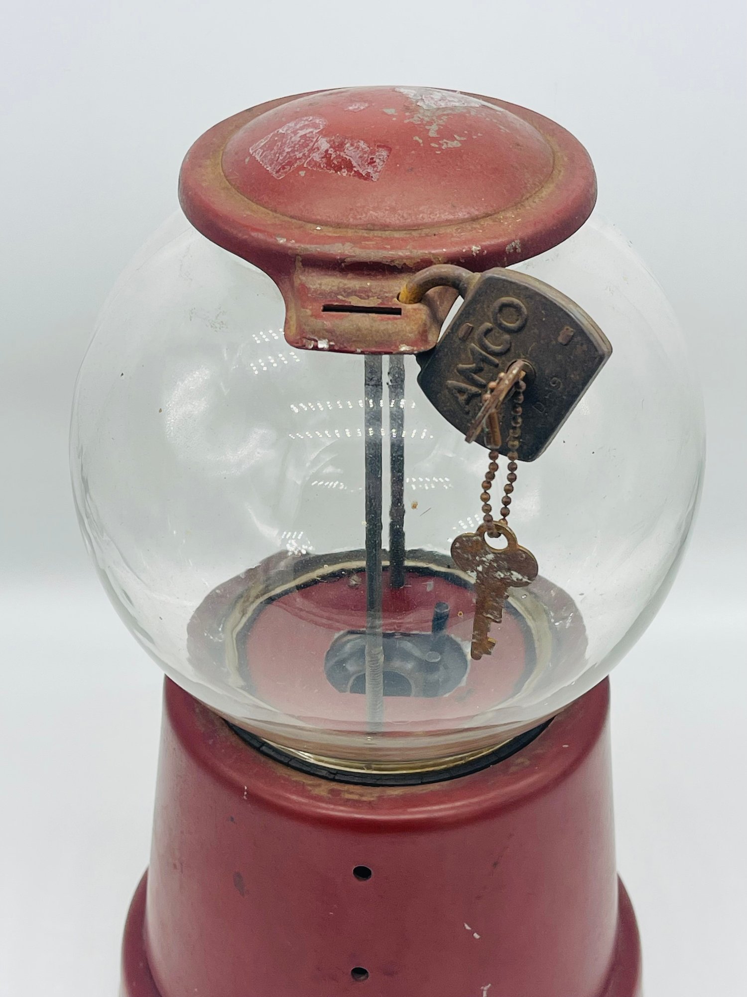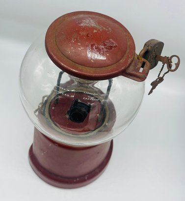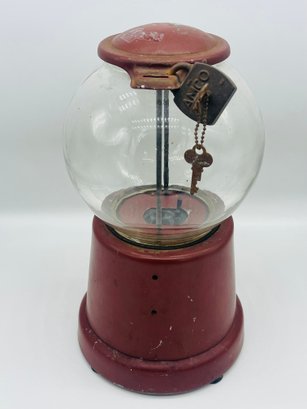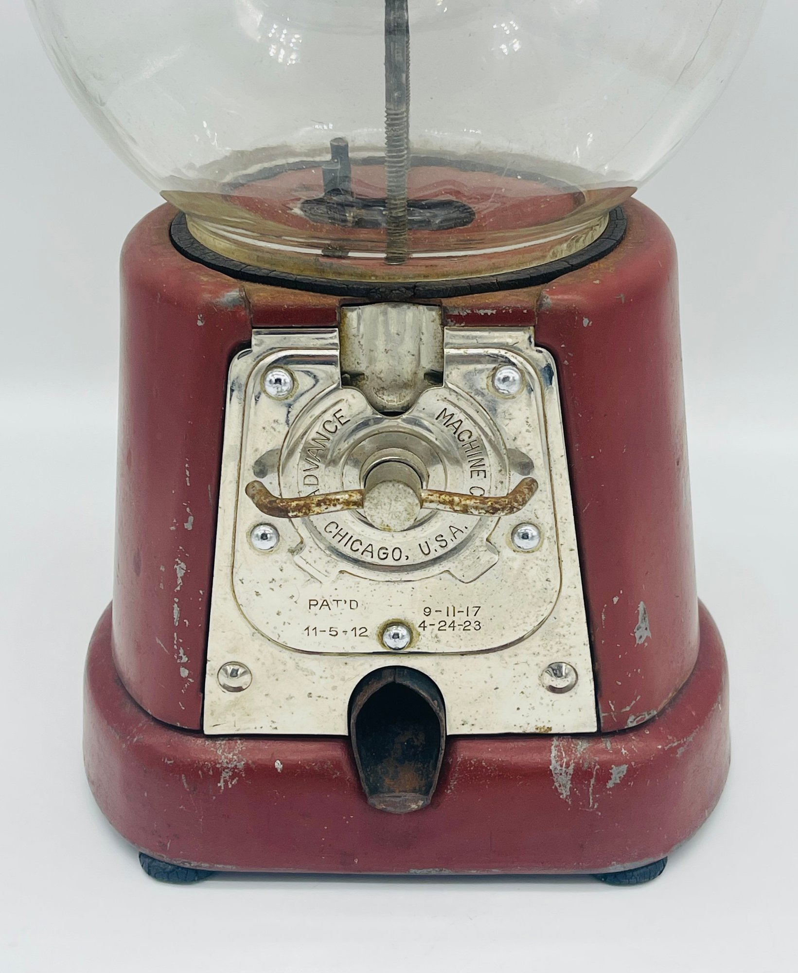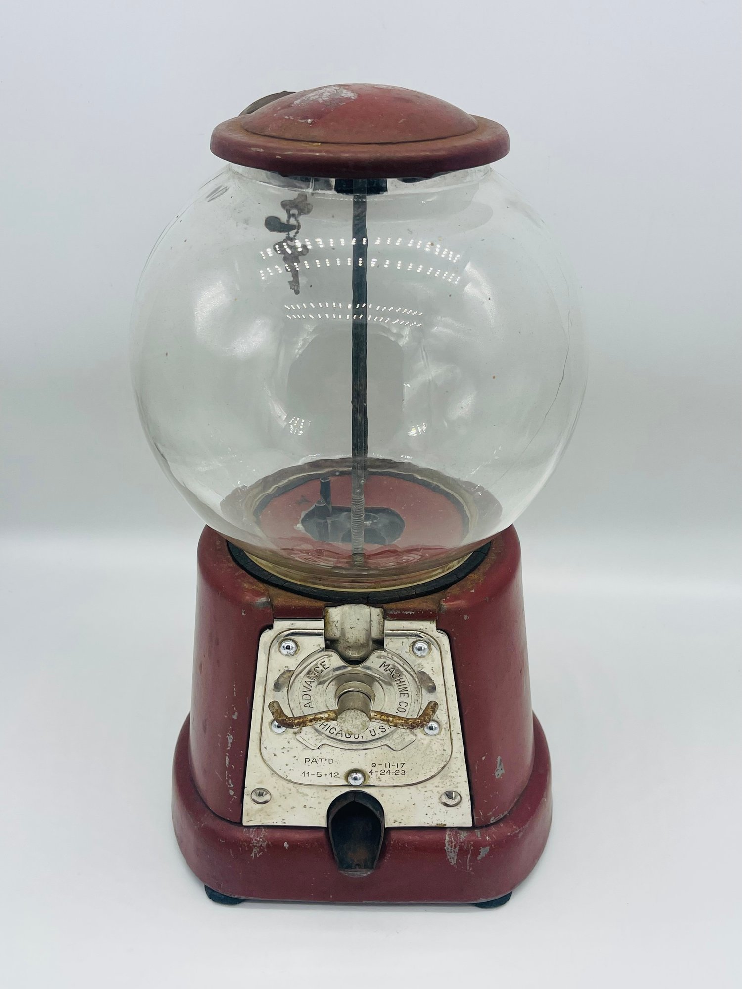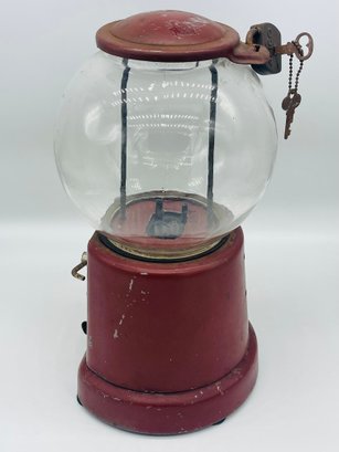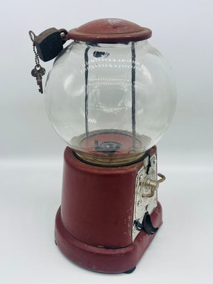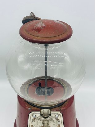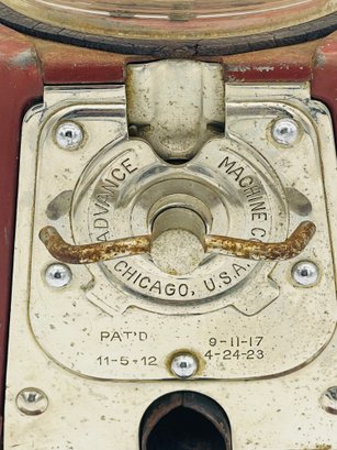 Rare Antique 1920s Advance Model D Penny Coin Operated Gumball Machine Original Paint W/ Key & Lock Complete. Measures approximately 13" tall x 7" across. Original paint with patent dates on bottom.