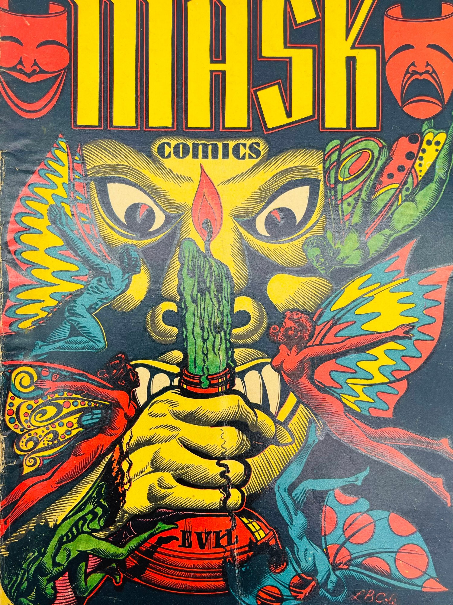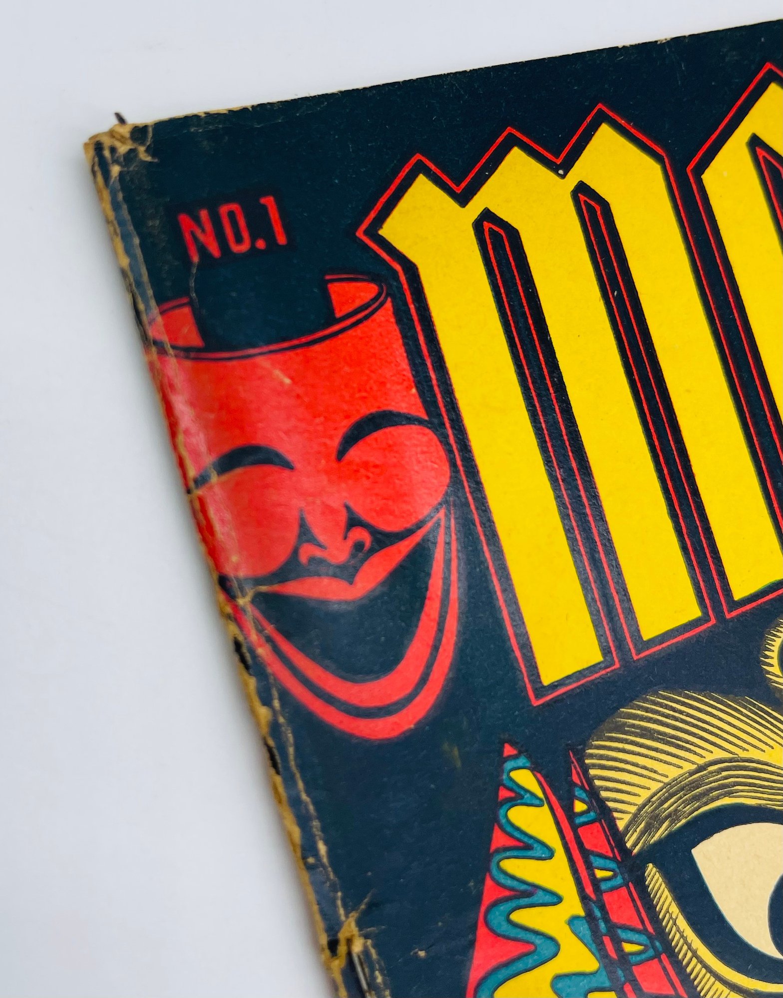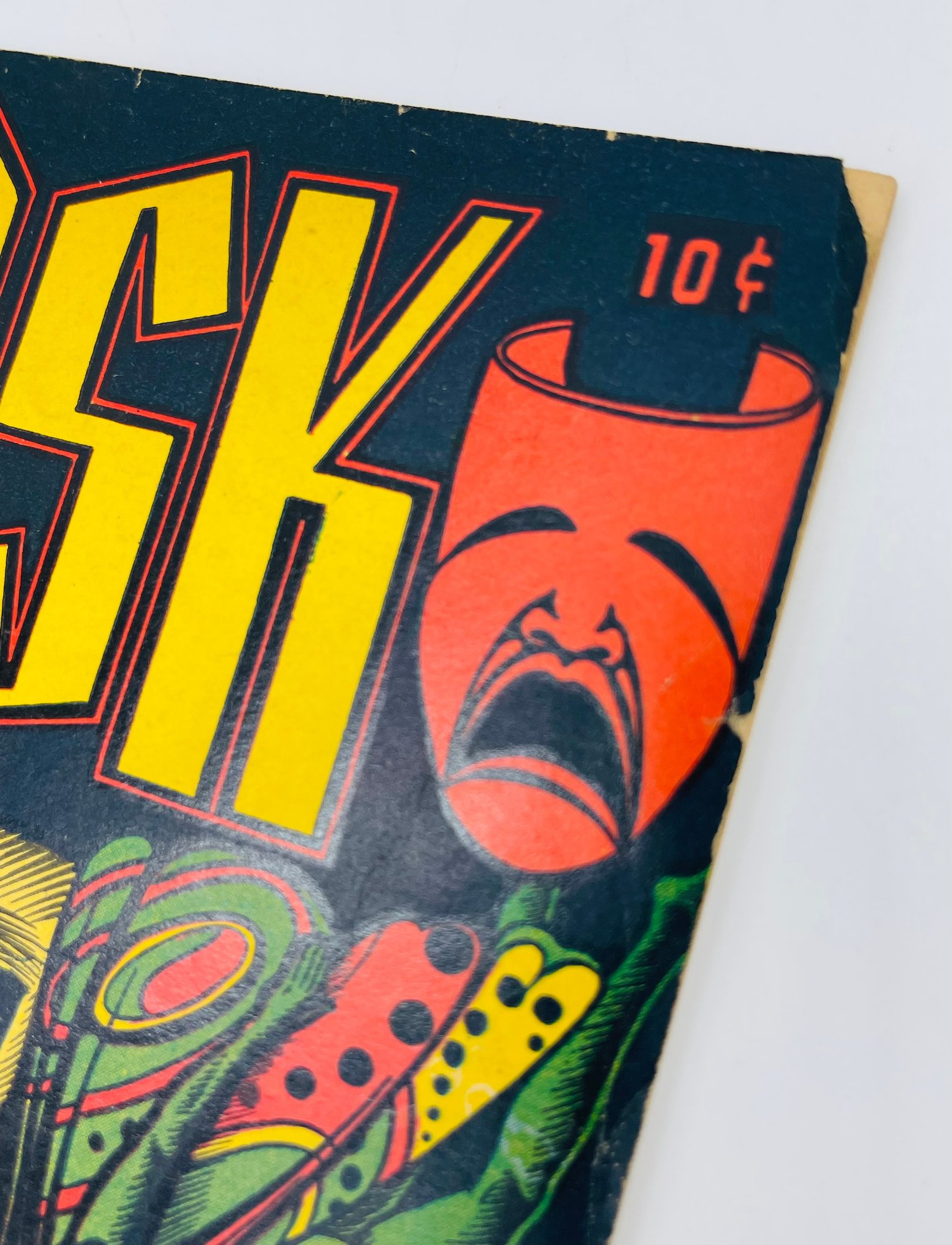 Up for sale in this NO RESERVE auction is a Extremely Rare and Highly sought after Vintage 10 Cent Golden Age Comic Book First Issue of Mask Comics Issue No. 1 1945. This is one of the most sought after Golden Age Comic Books for Collector's with less then 100 copies recorded in the CGC Comics Census with this for sure being an unknown existing copy as it has been hiding in the same estate home for the last 80 years. Published by Rural Home Publications. All pages are intact with cover attached and please view close up photos to help in condition detail. As stated this is what people would call a barn find in the car world, to us it looks to be in very good condition and better then some we are seeing at a 3.5, 4.0 rating but if you are a serious buyer that needs more photos, information, would like to do a face time call to view the piece or come see in person we more then welcome that so please contact the auction company on this or any of the comics posted for a viewing. Rare opportunity for this piece fresh out of a Missouri Estate that has been in the family for years.