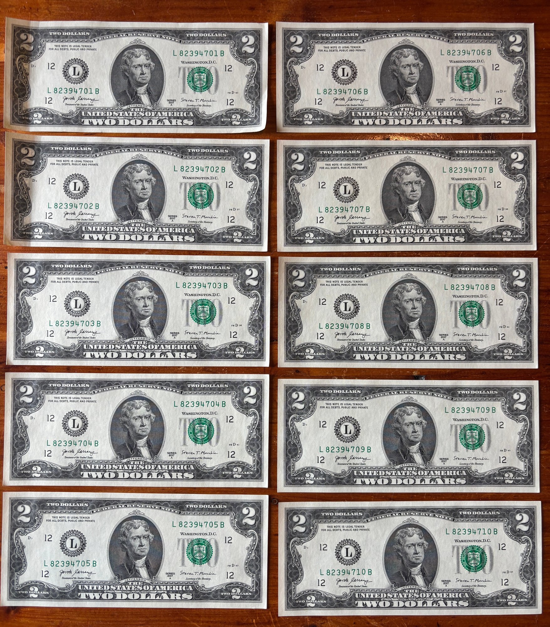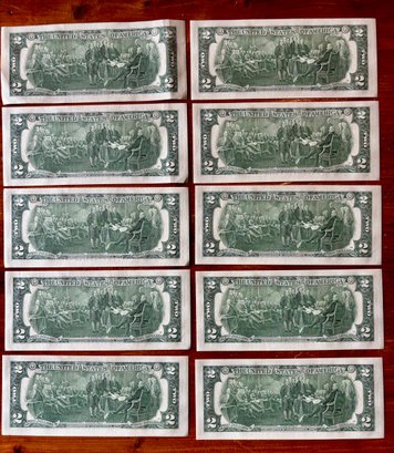 (10) Crisp, Uncirculated, Direct From The Mint 2017 $2 Bills