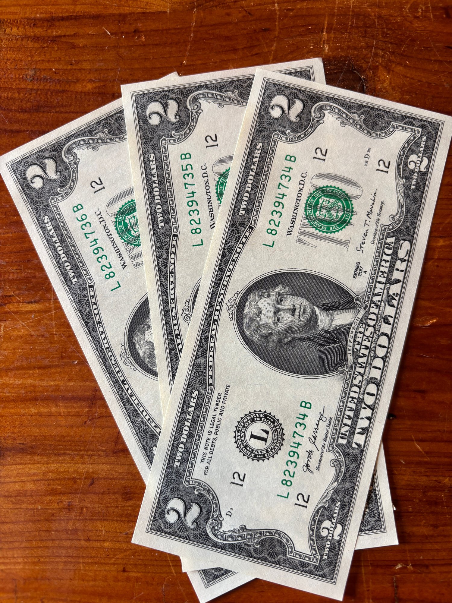 Notes: Uncirculated $2 dollar bills