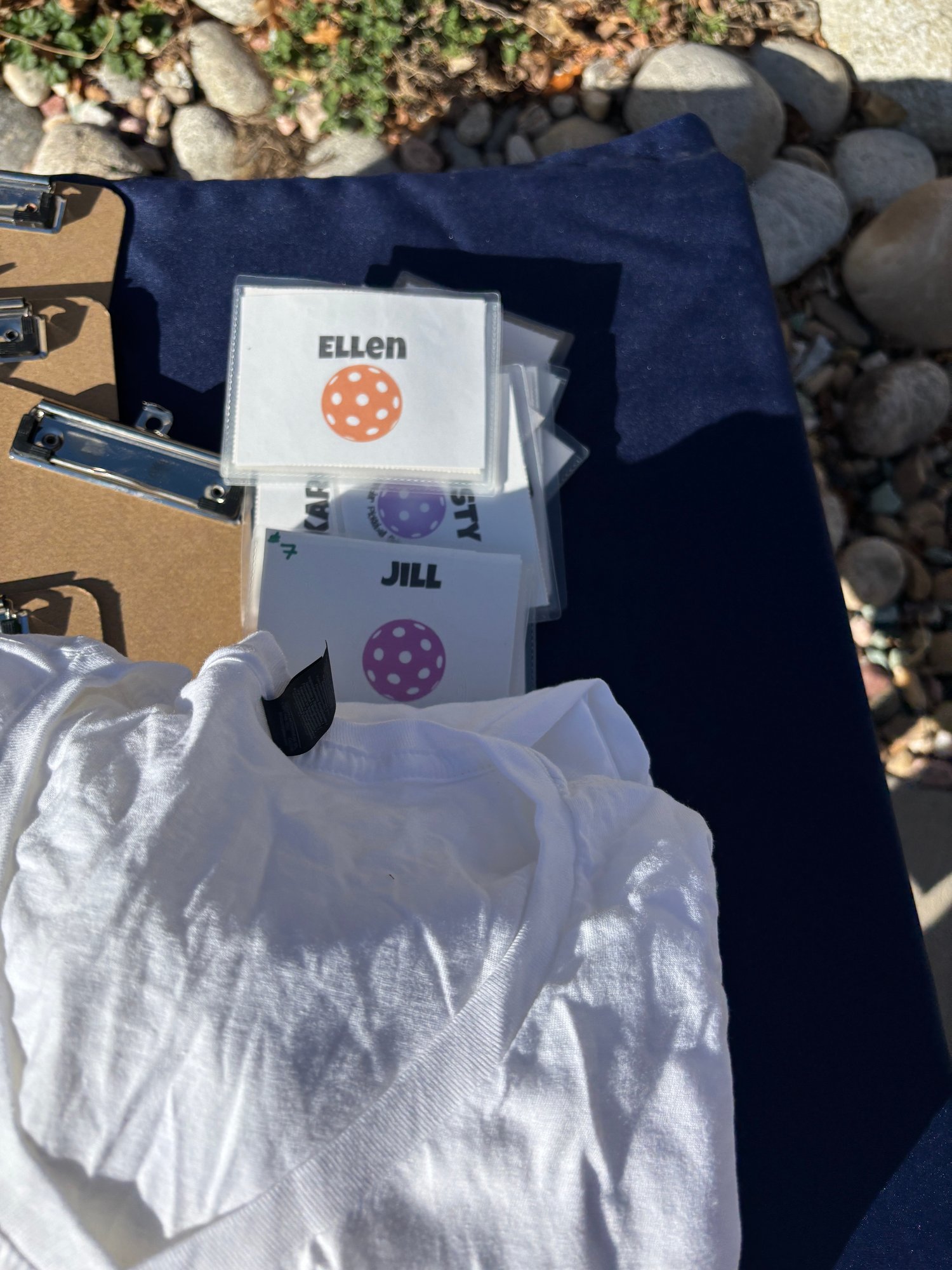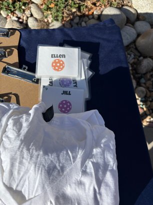 Pickleball stuff, Owner managed a league. The last pic is me holding the largest clipboard I've ever seen!