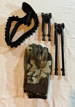 gloves(L), tripods(2), bandoleer belt
