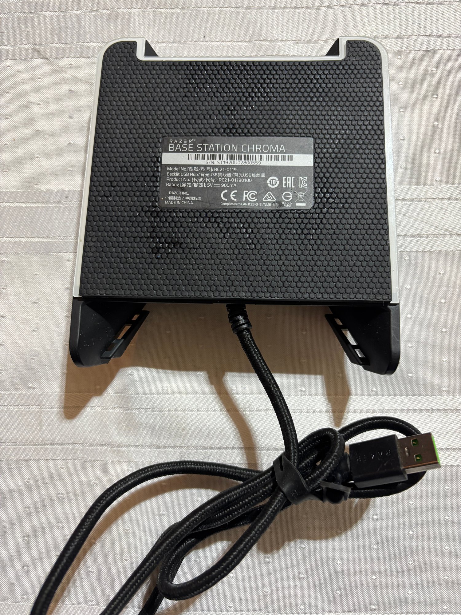 stores, displays and charges headphones