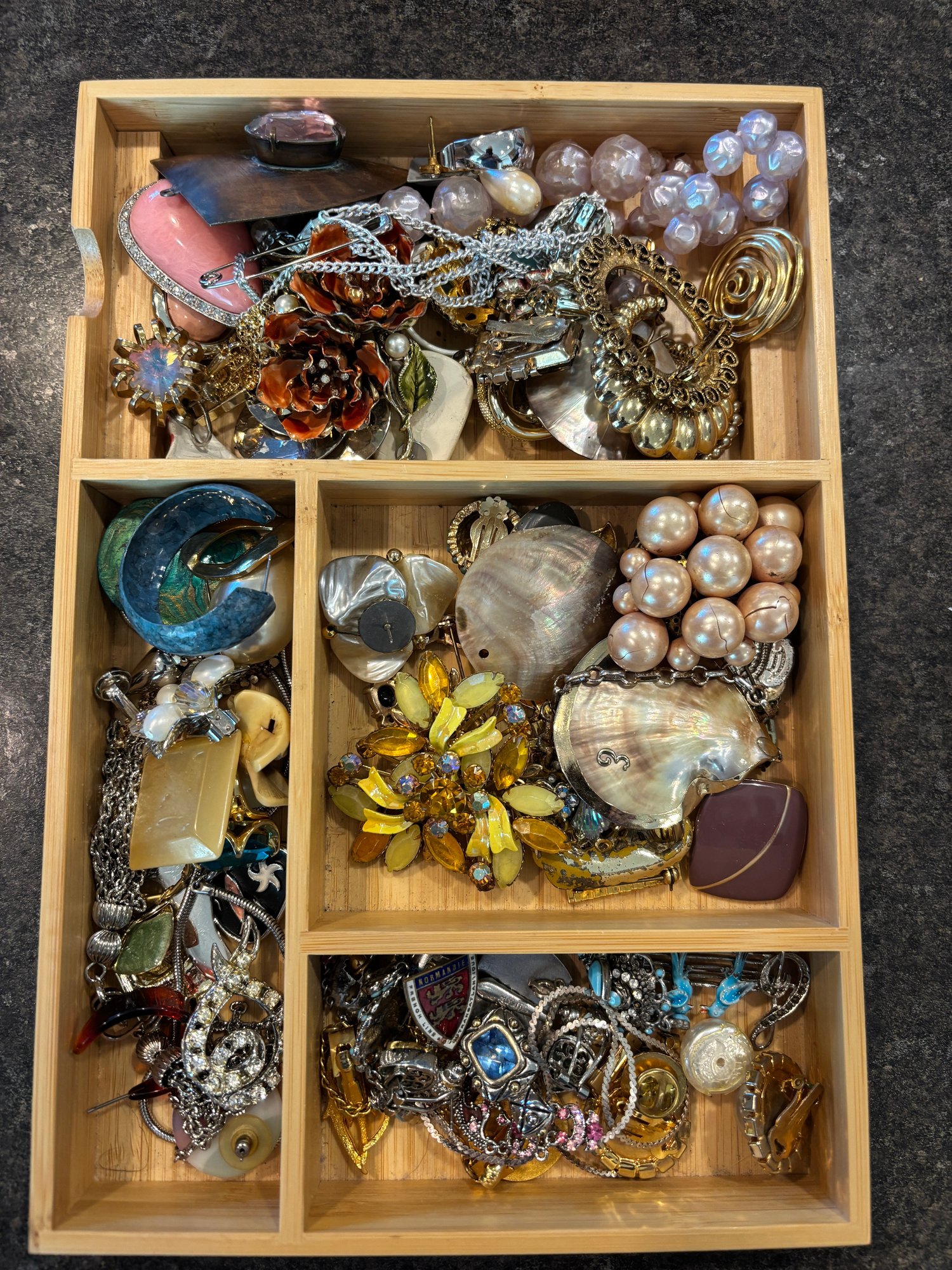 Mostly costume from the 50's and 60's. Not checked for value