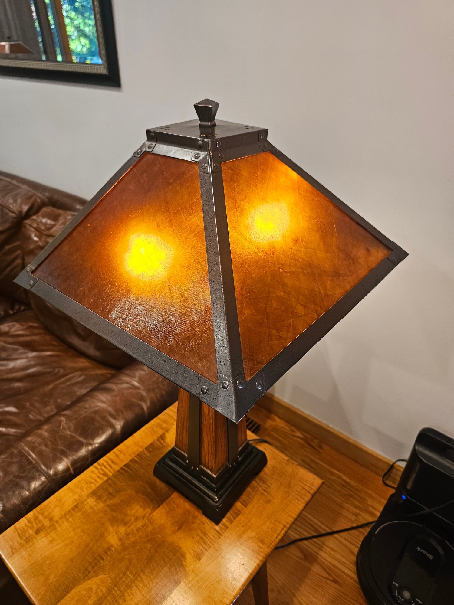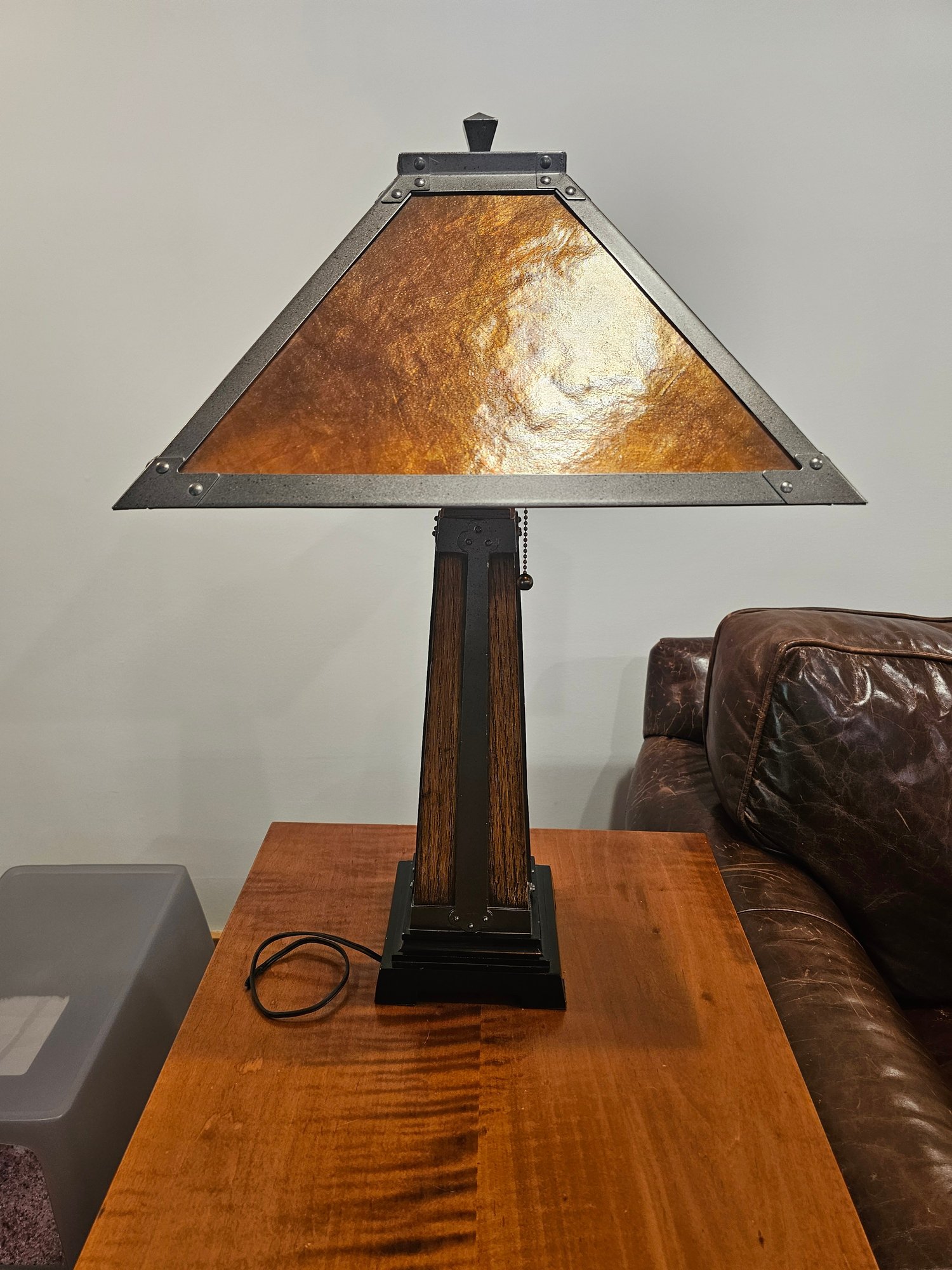 Pair of mission Style Lamps, notice one in need of cord replacement. 25 tall. Shade 16 diameter
