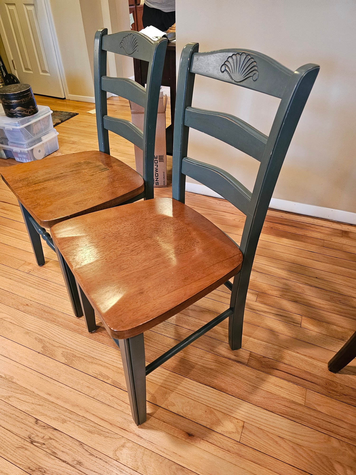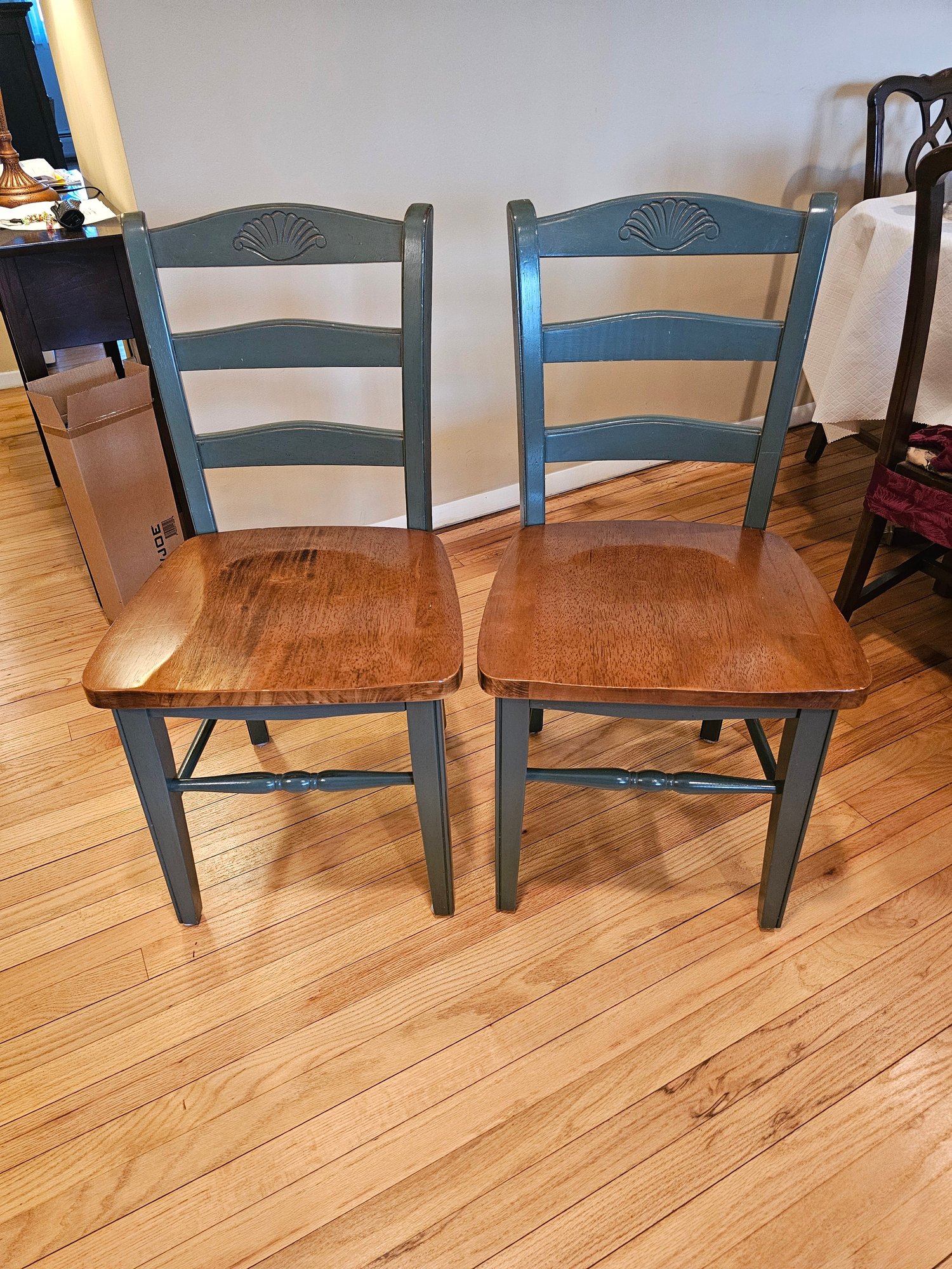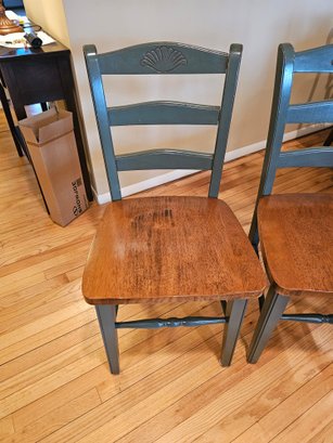 Pair of Natural wood and painted ladderback Chairs 18x17x35 seat height of 17