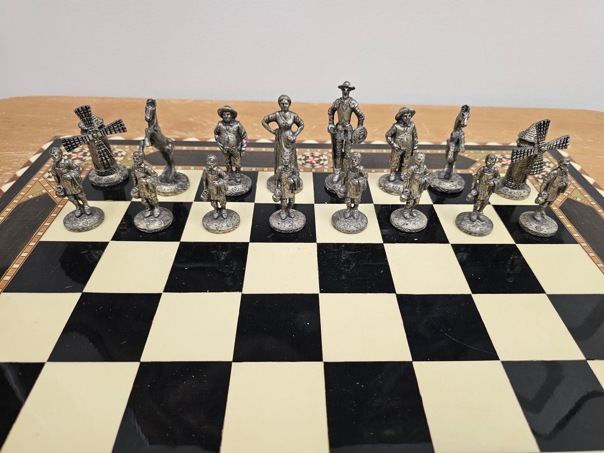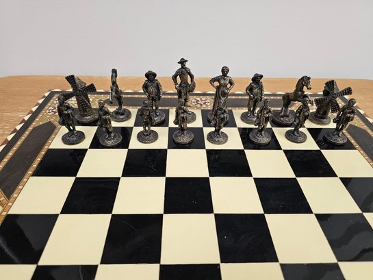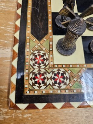 Beautiful Moroccan Chess Table and Pewter Chess Pieces