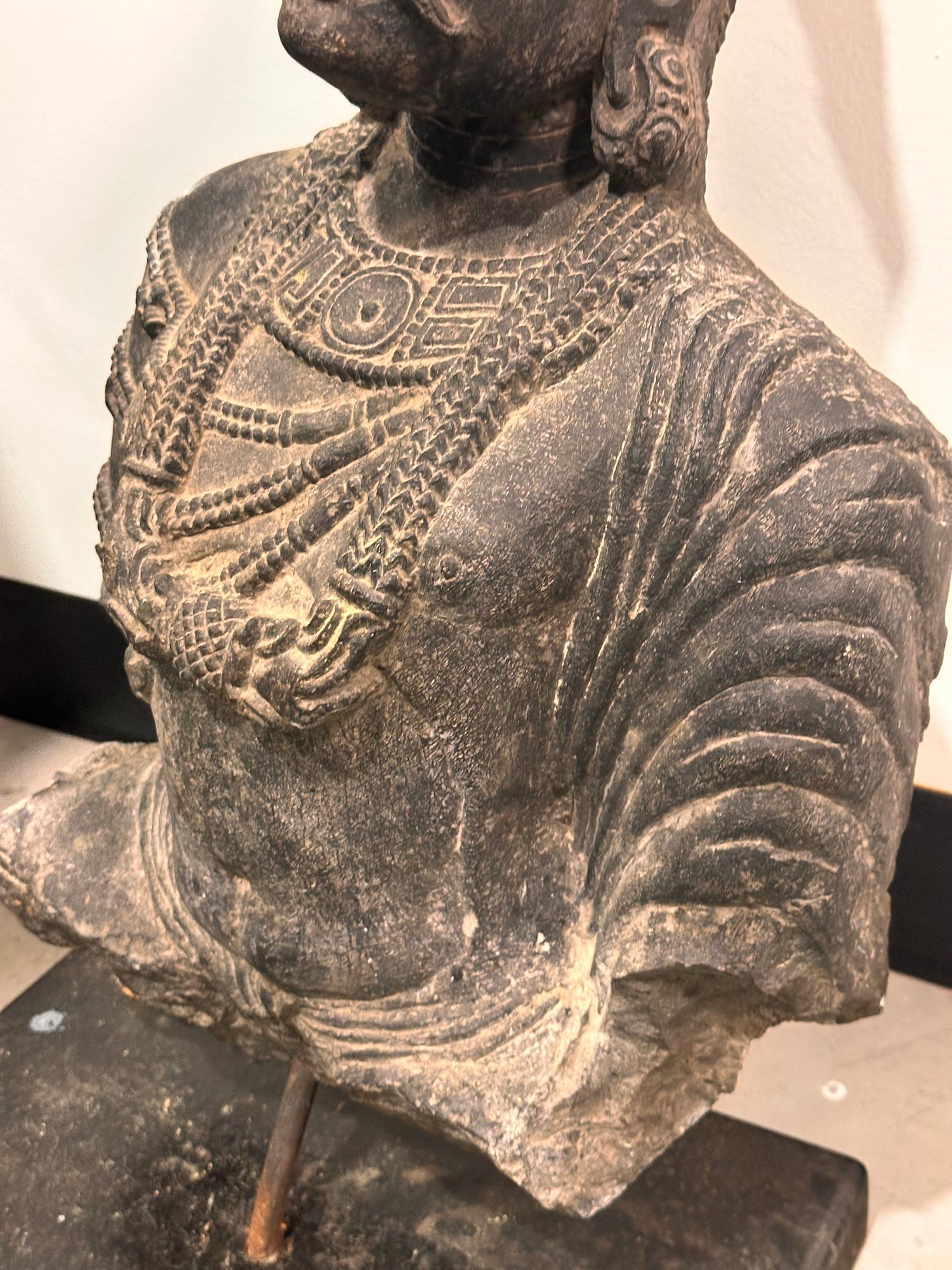 Beautiful Stone Buddhist Bodhisattva, very heavy. If shipping expect weight to be in the 70 pound range