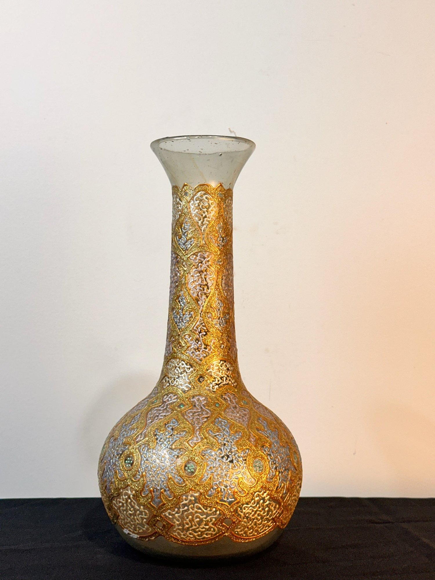 Beautiful glass vase. Potentially of Middle Eastern influence. All shipping is handled by the New Windsor, NY UPS Store. Please contact them directly for a shipping quote. Once you agree to their quote, I will bring your winning items to the UPS Store for packing and shipping. You will also pay the UPS Store directly. For a shipping quote email them at store1747@theUPSstore.com. Please do not text auctioneer for shipping status.