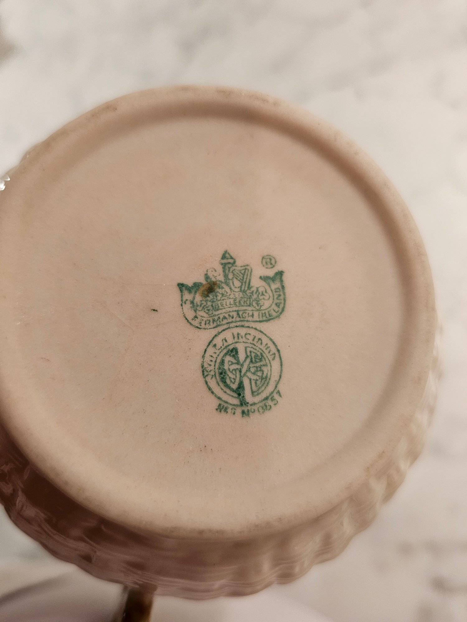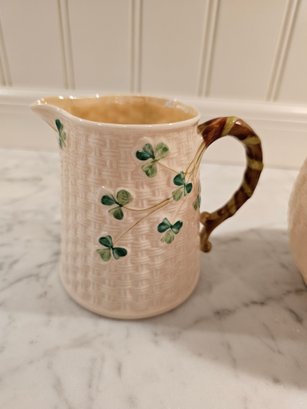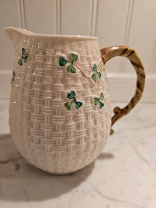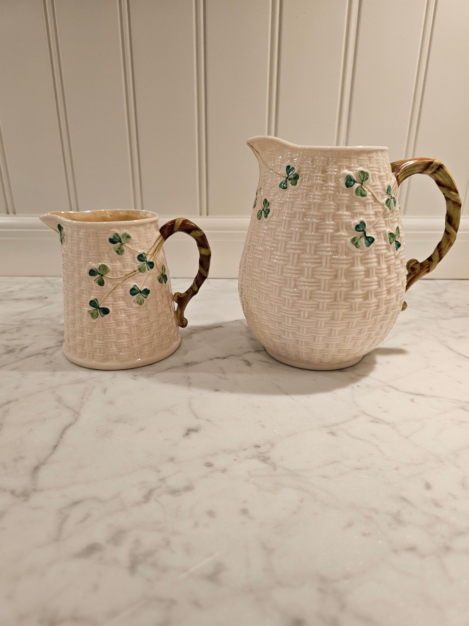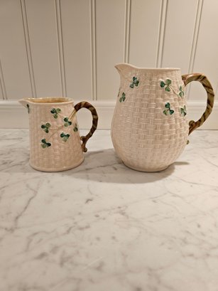 Belleek Basket Weave Shamrock Patterned Pitchers. Very fine Irish china