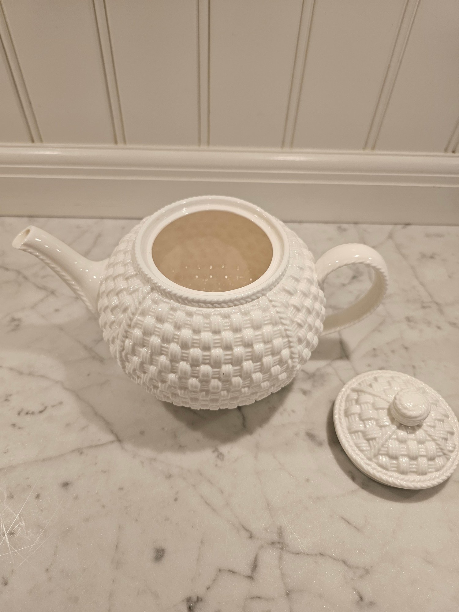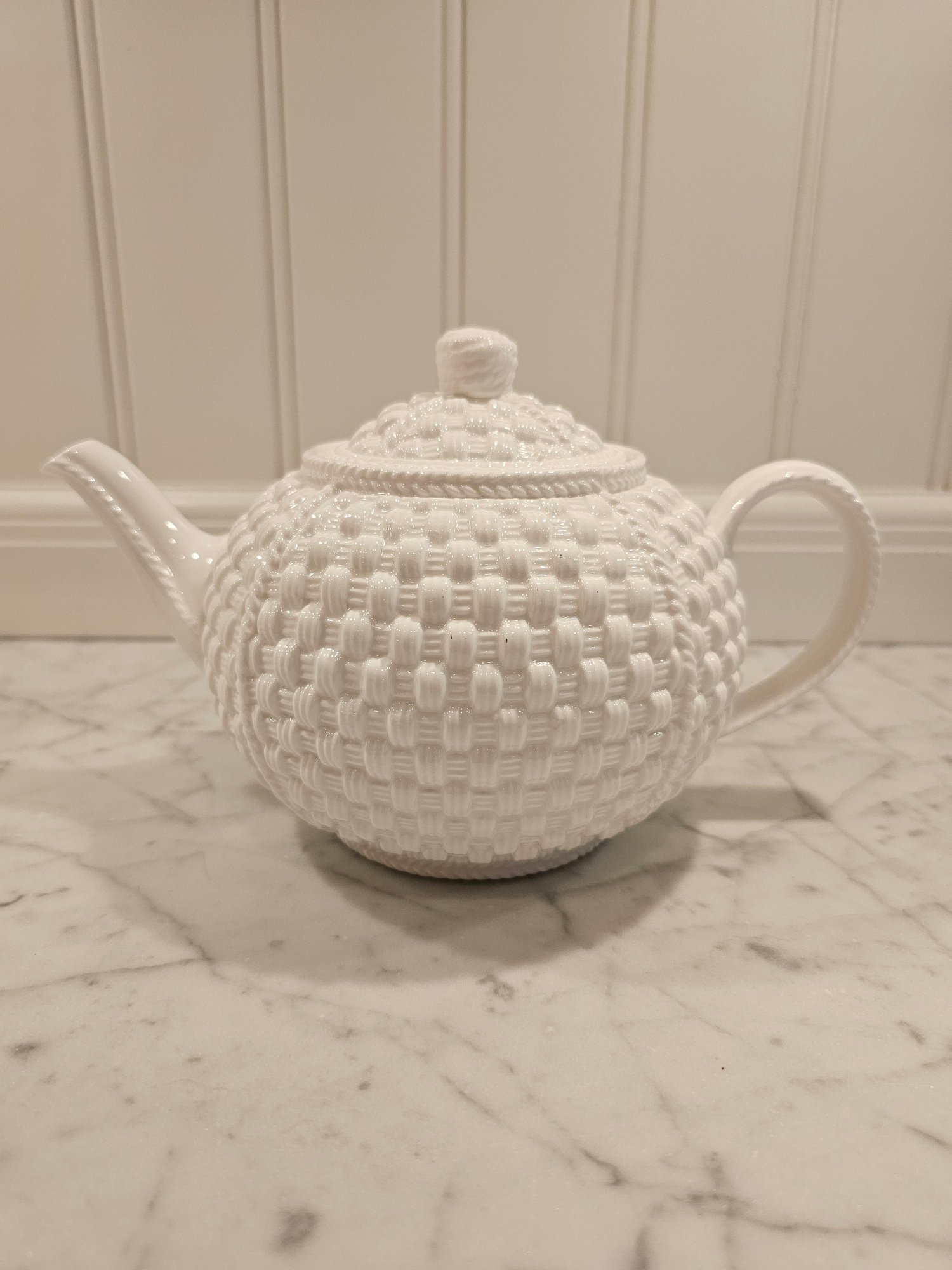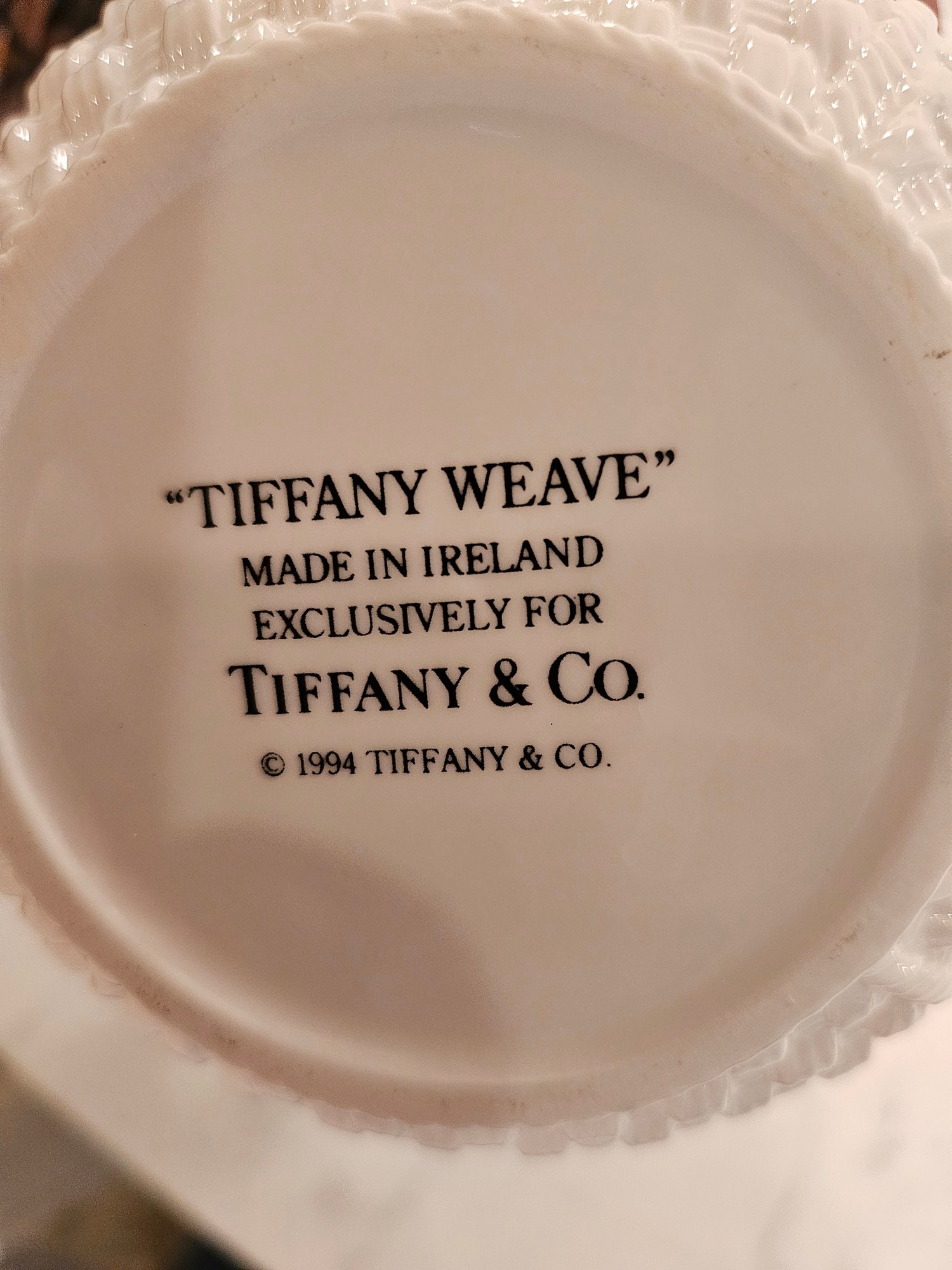 Belleek Teapot exclusively for Tiffany & Co. known as the Tiffany weave. Beautiful teapot in fine Irish China