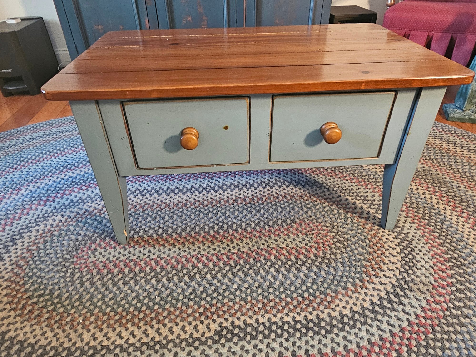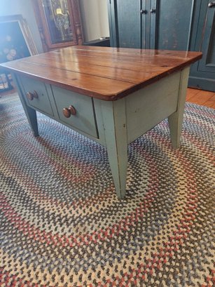 Blue and Maple Top Country Style Coffee Table 22X36X19