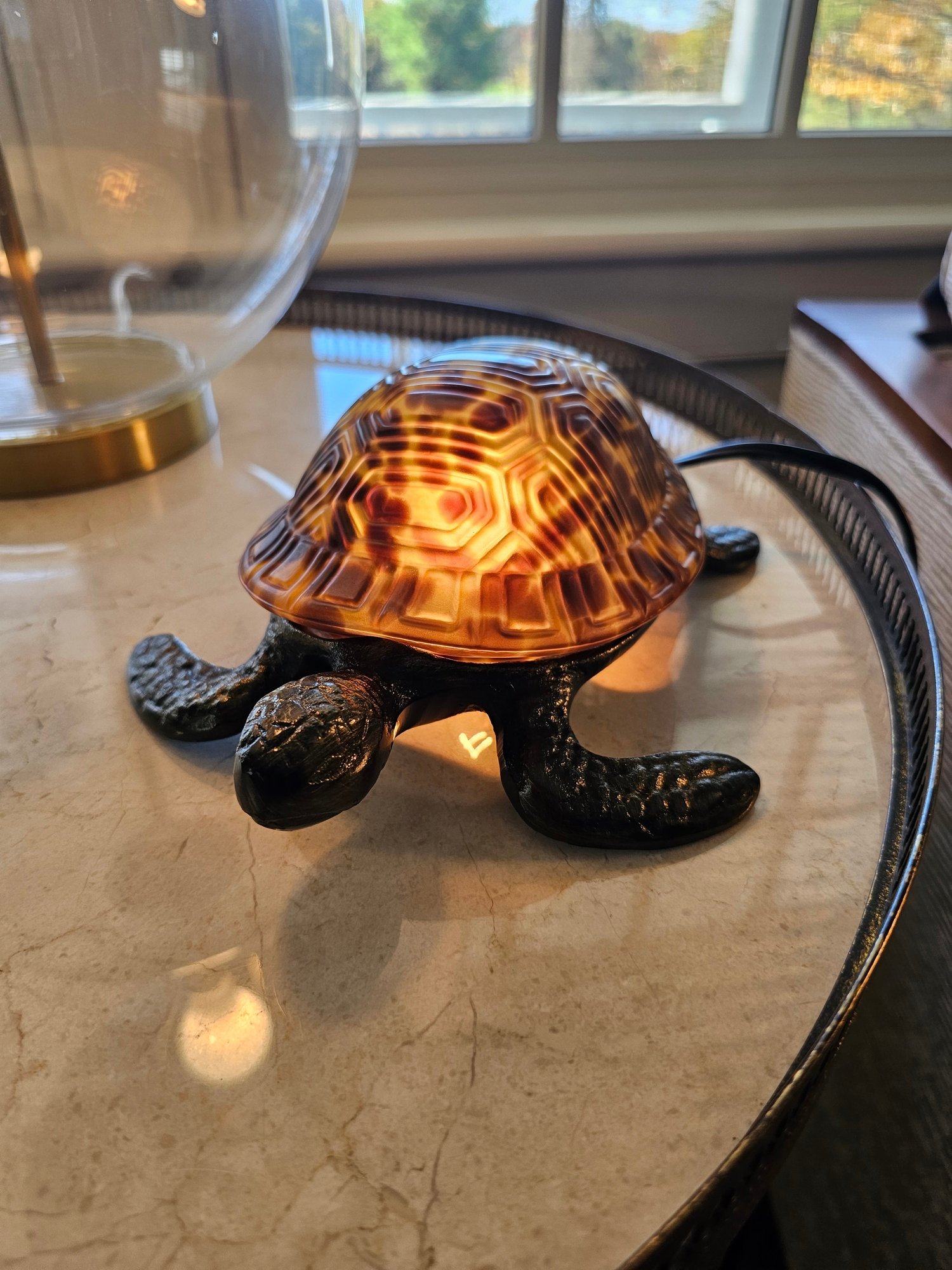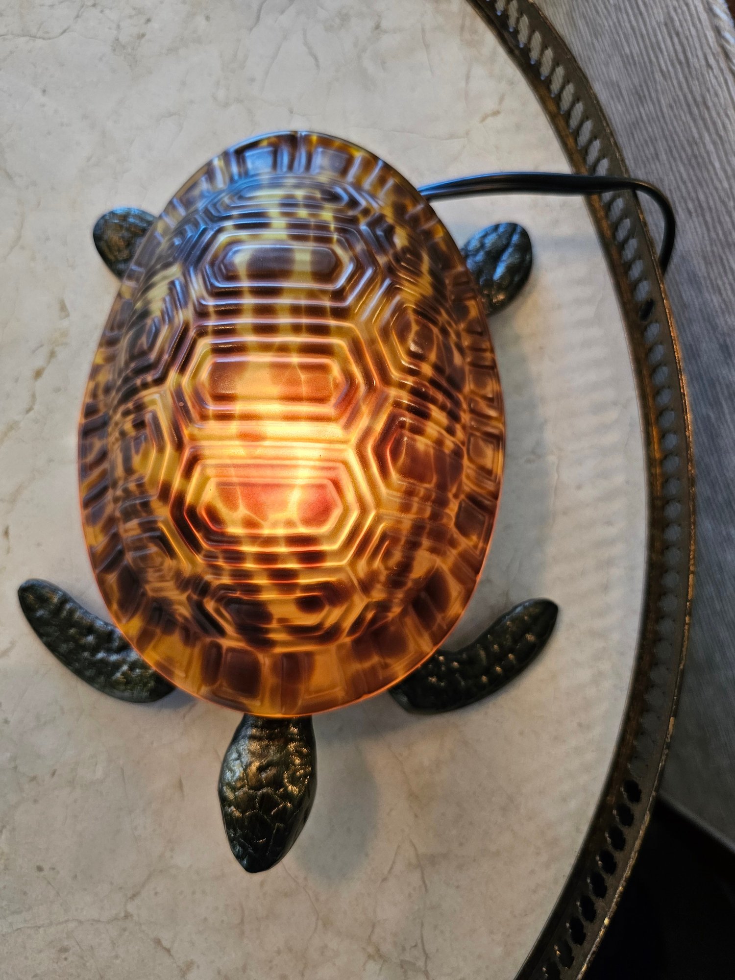 Brass/Bronze Turtle Table Lamp/night light. measures 7x8