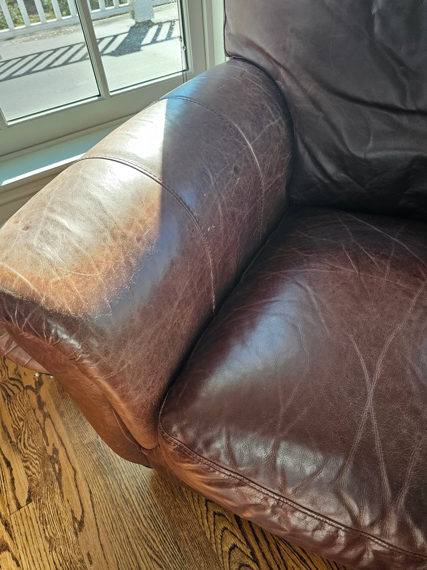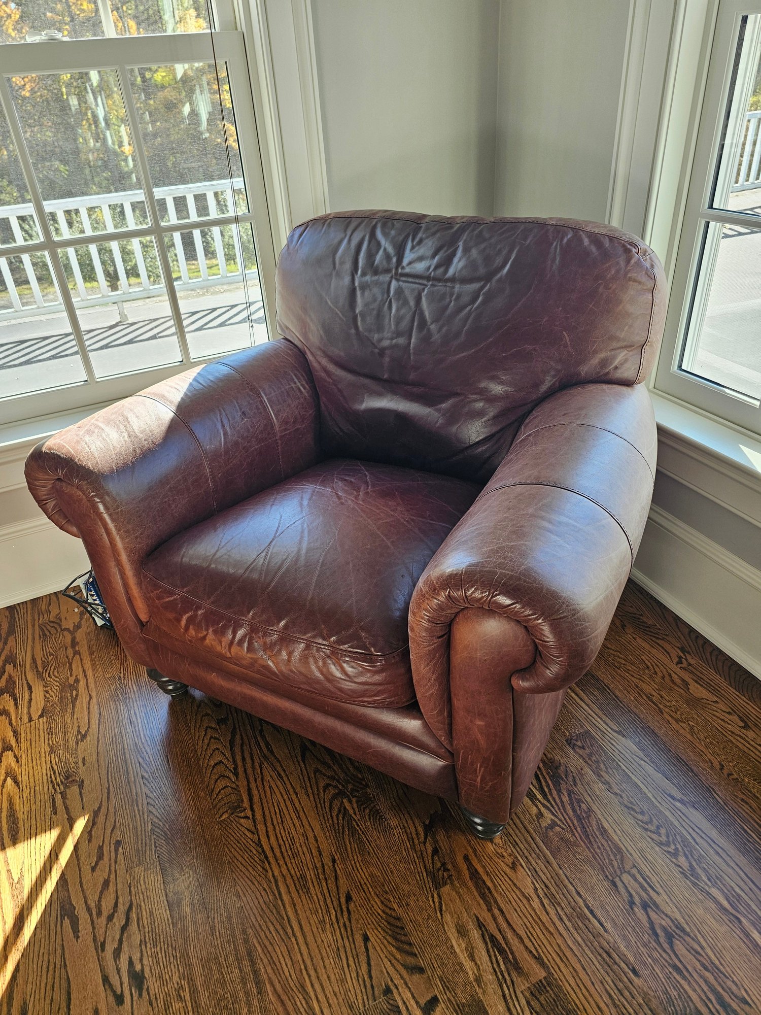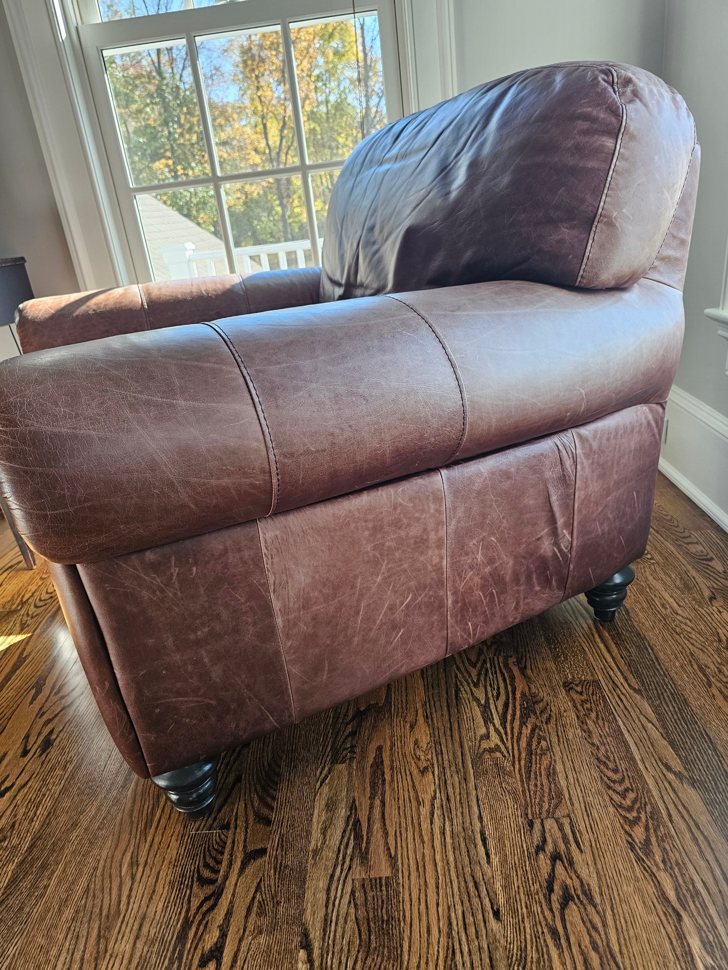 Brown Leather Club Chair. No tags but possibly Pottery Barn42x38x36