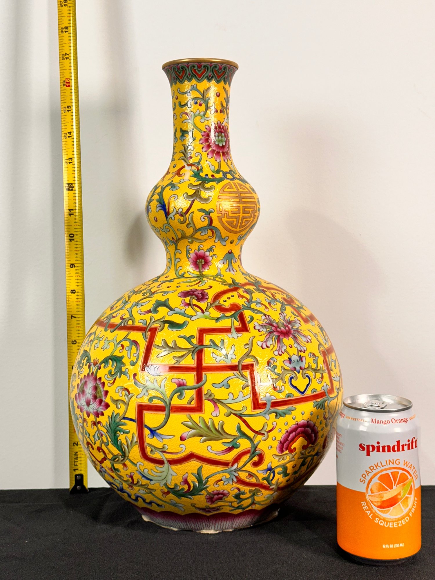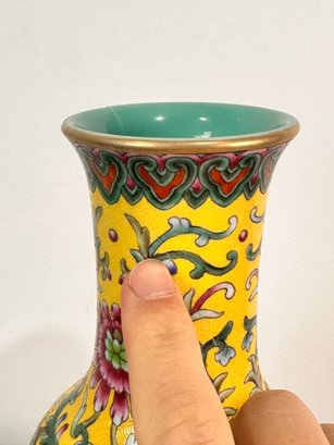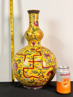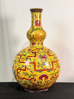 Chinese Qing Dynasty Style Yellow and Floral Vase