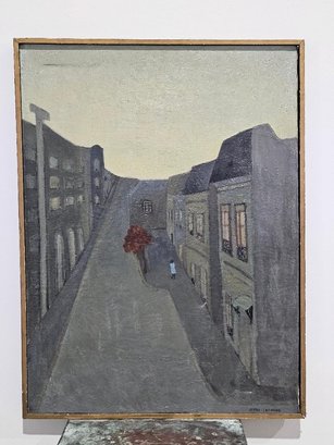 City Scape by Juana Lecaros, on canvas 24 1/2 x32 1/2. Chilean artist 1920-1993
