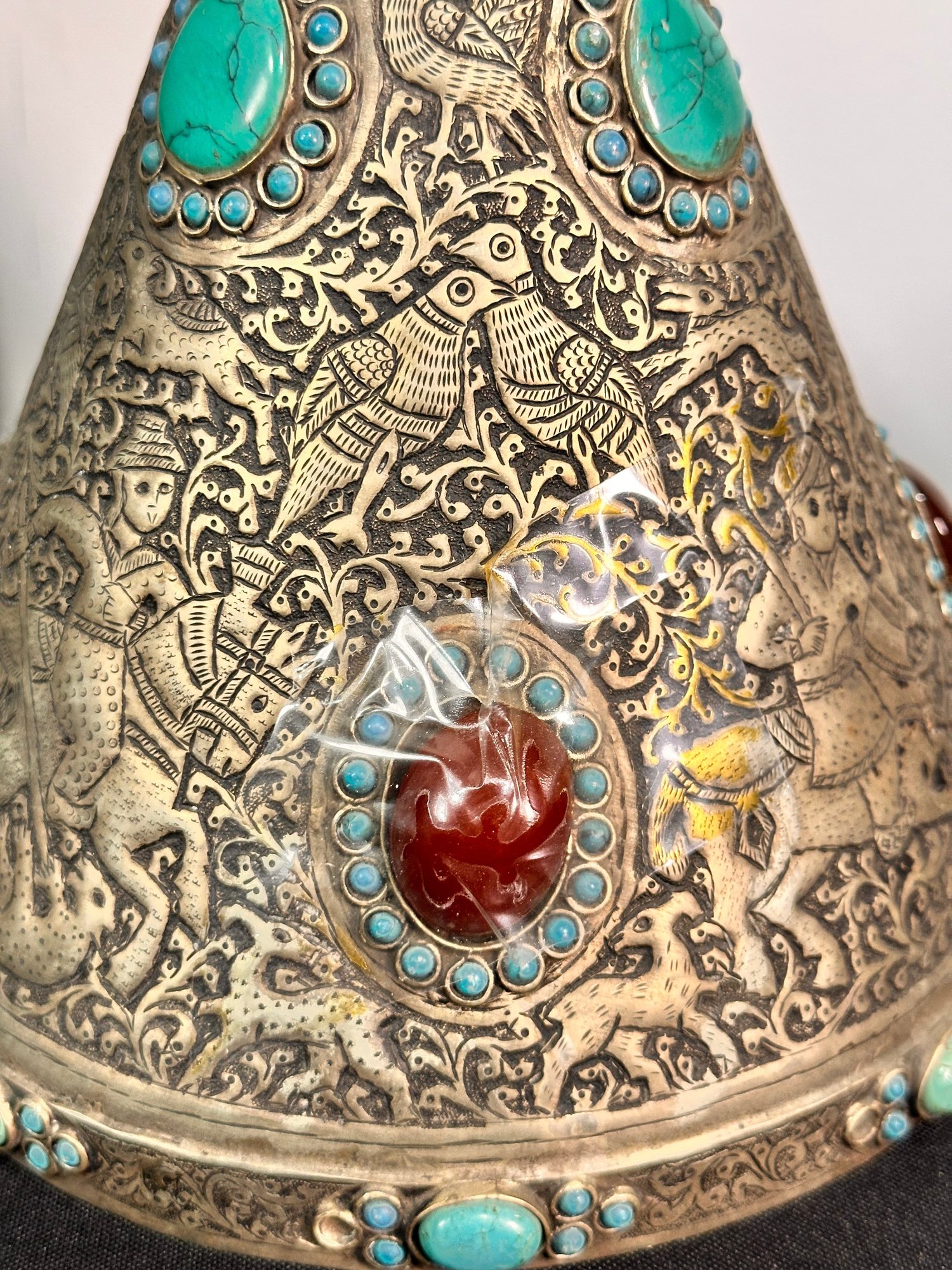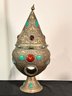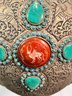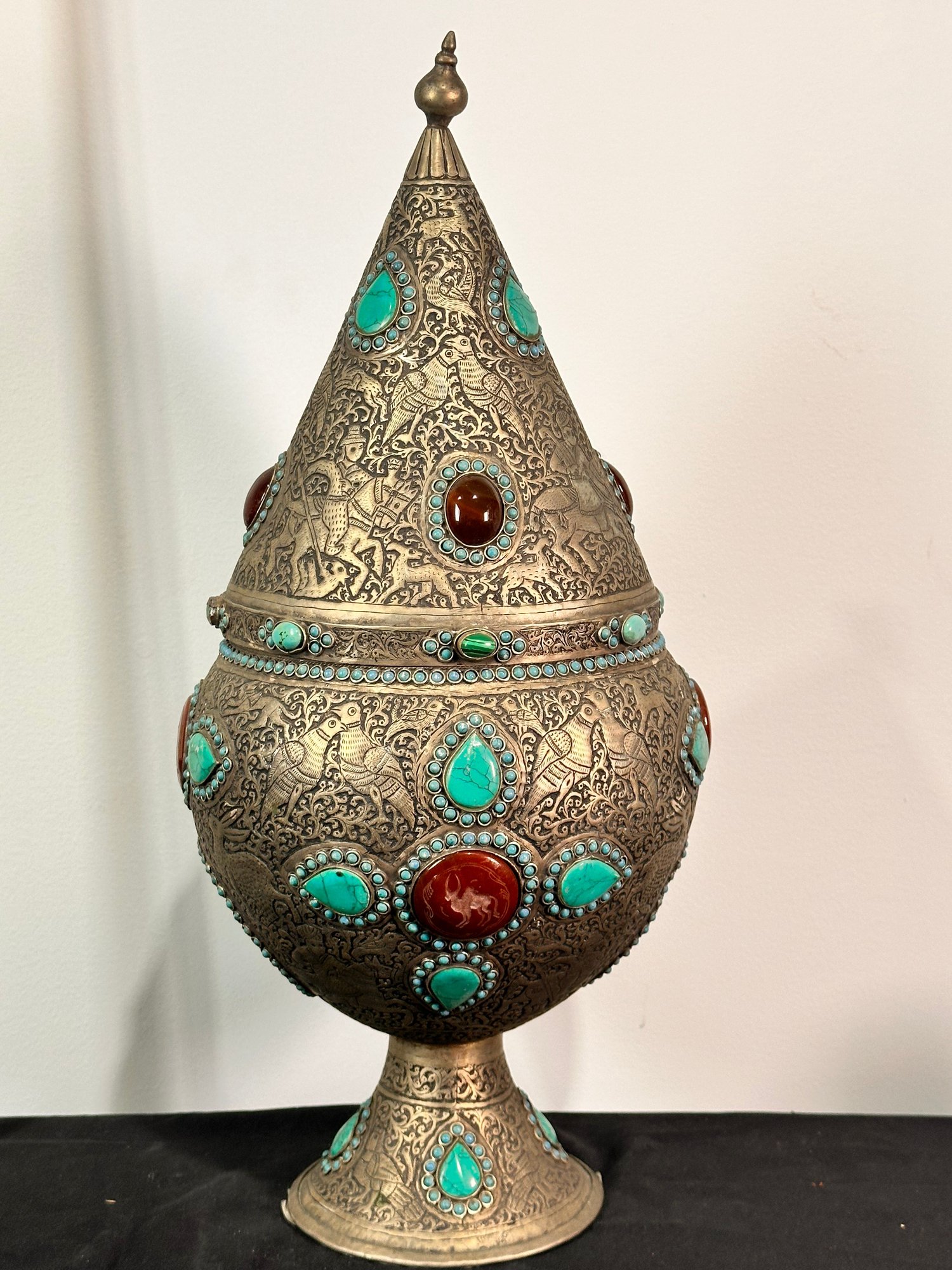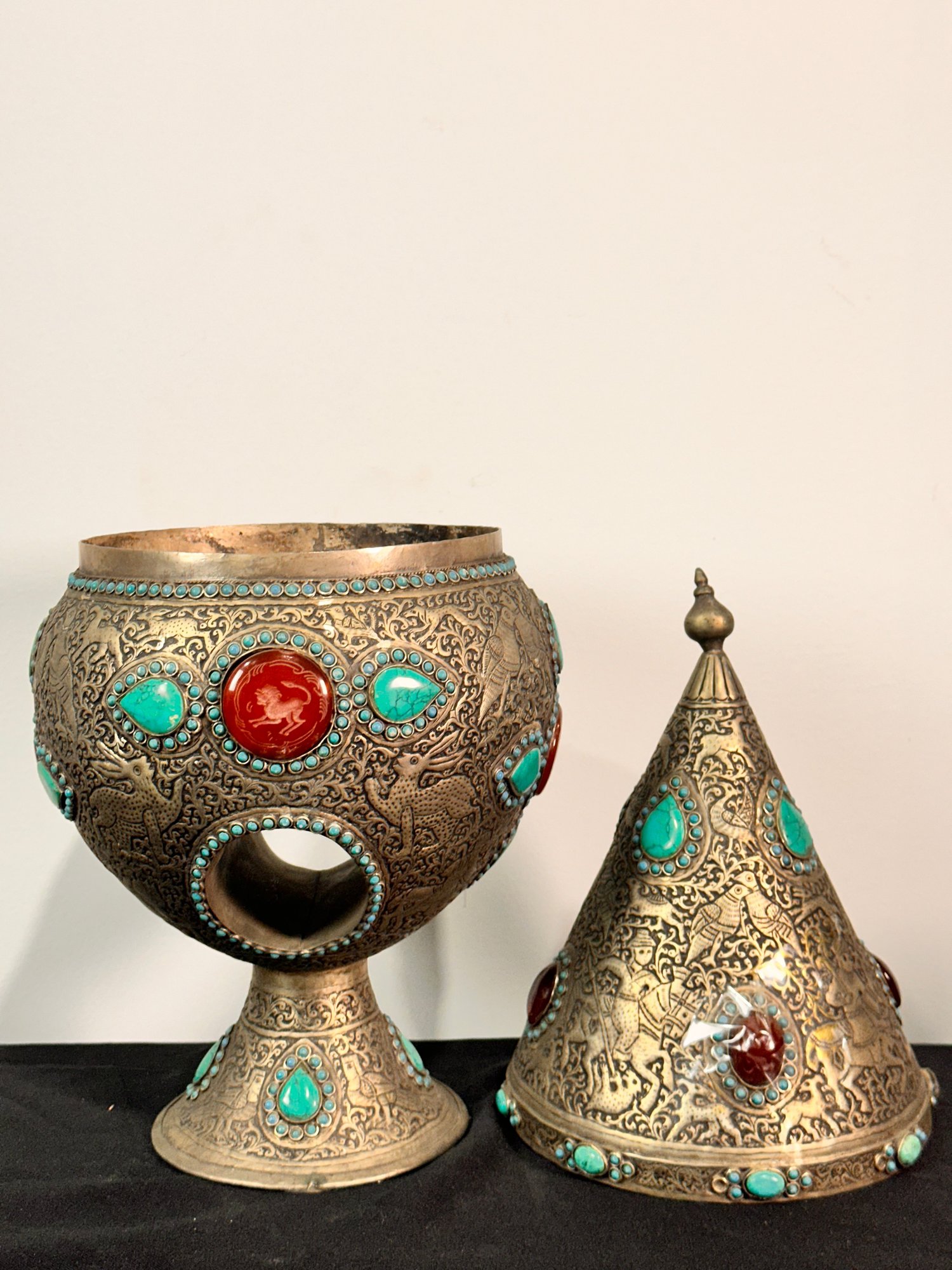 Nickel Silver Trinket box with Turquoise and other stones, notice one stone is being held in place with tape