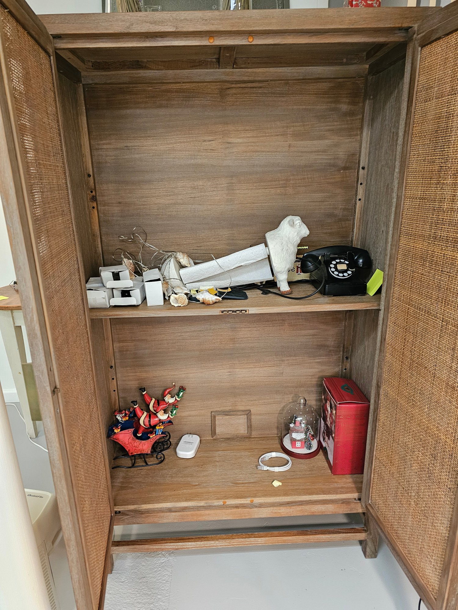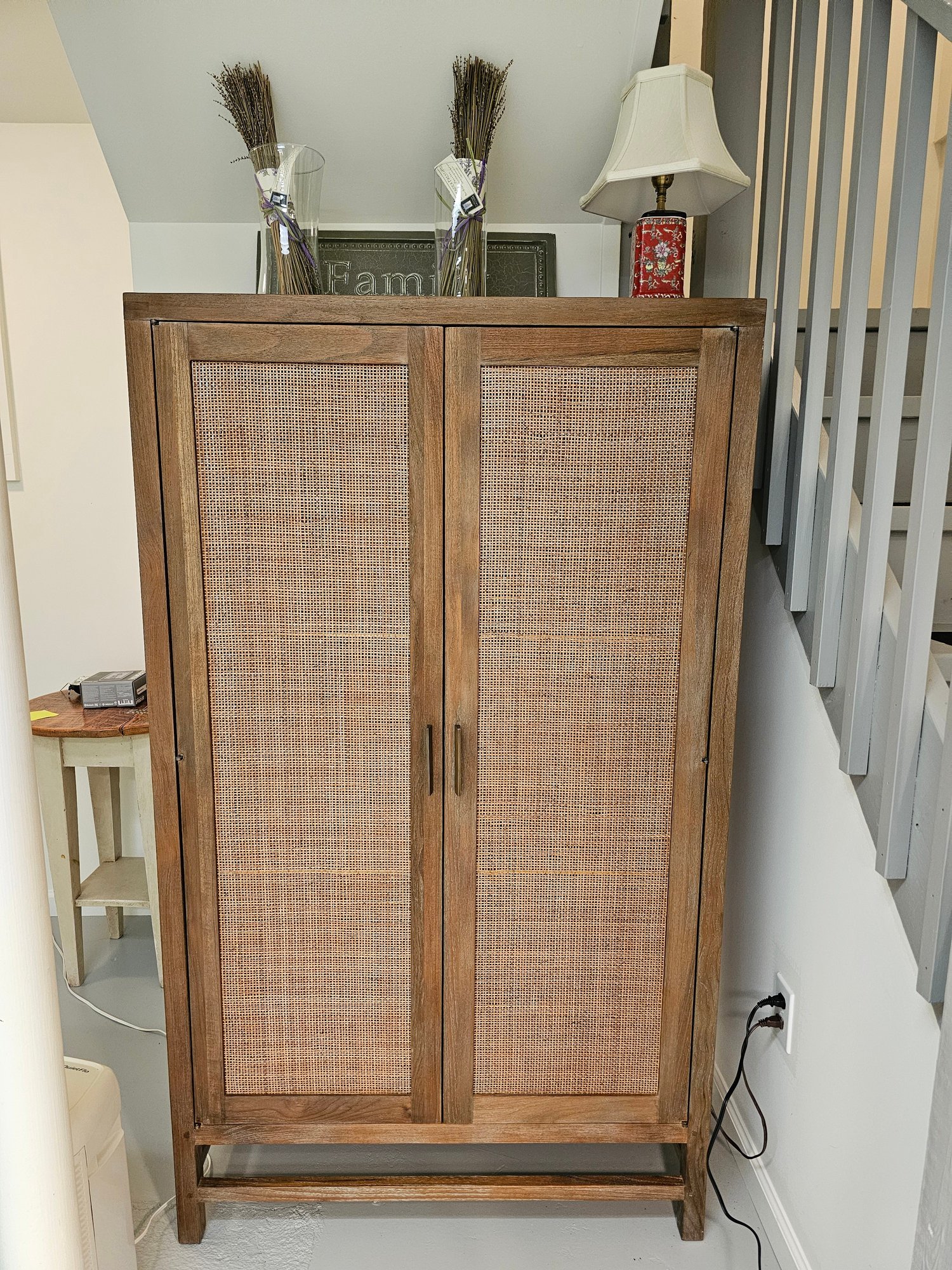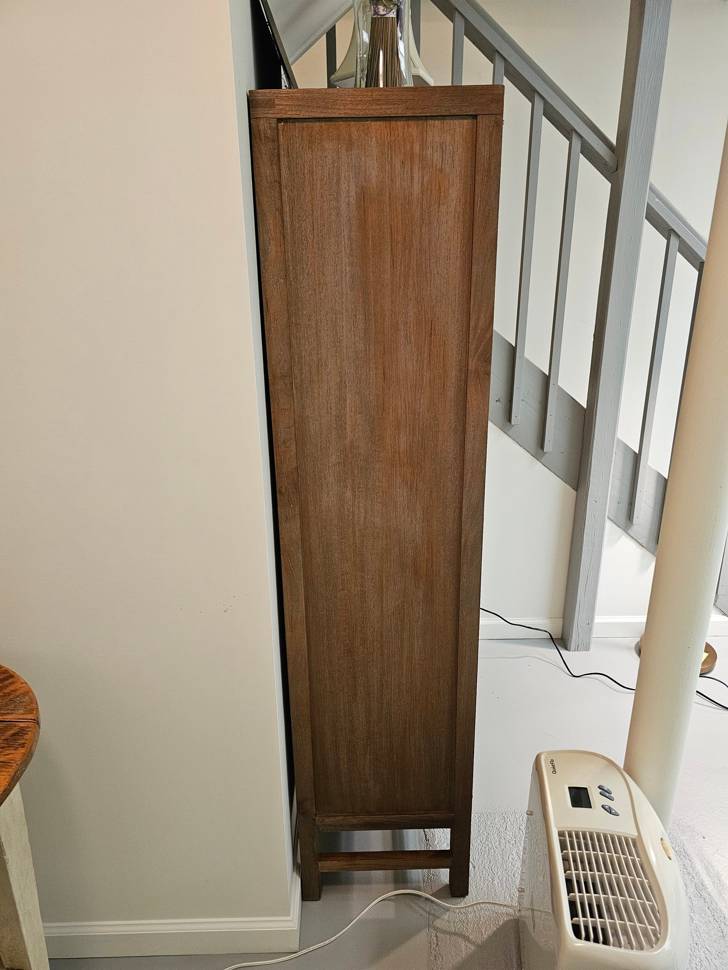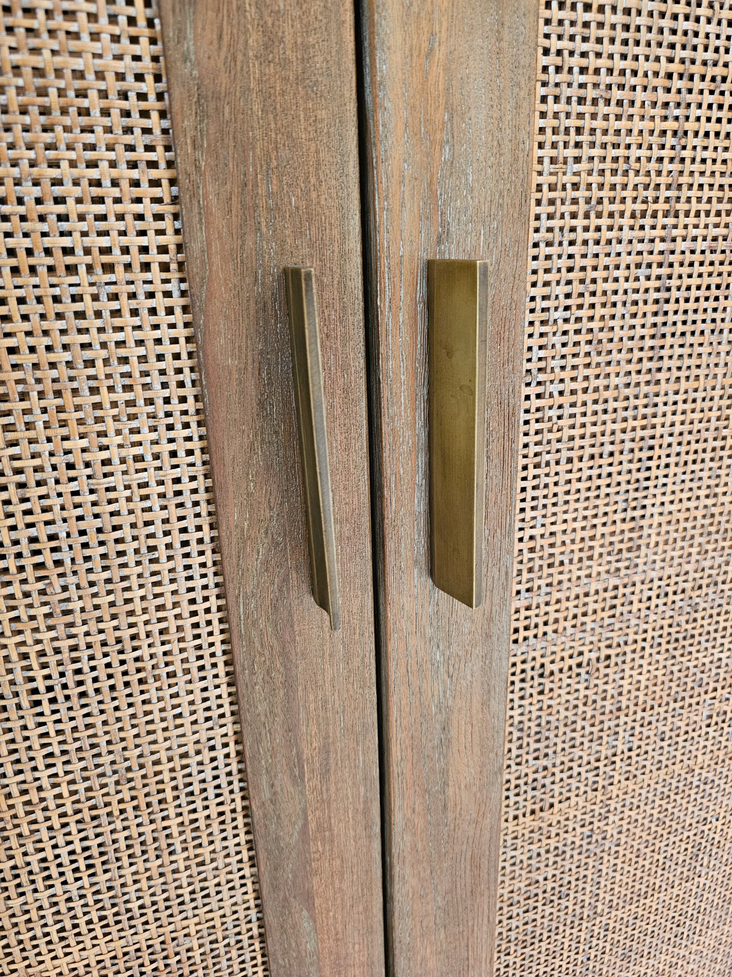 Crate and Barrell Teak and Rattan Storage Cabinet 37 x15 x64