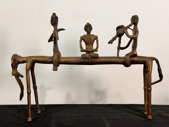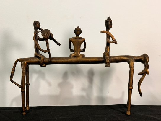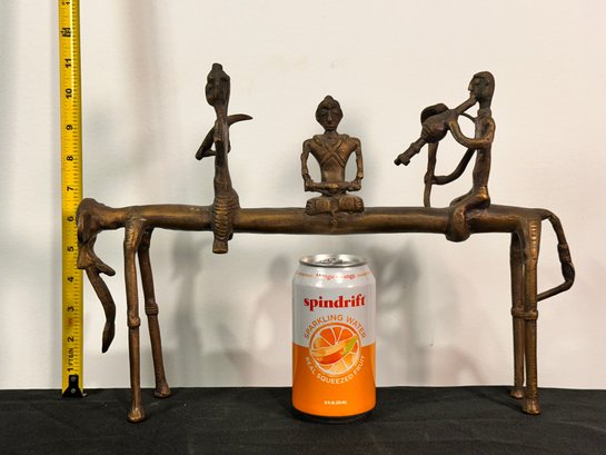 Indian Dhokra Bastar Brass Elephant with musicians sculpture, fol art sculpture